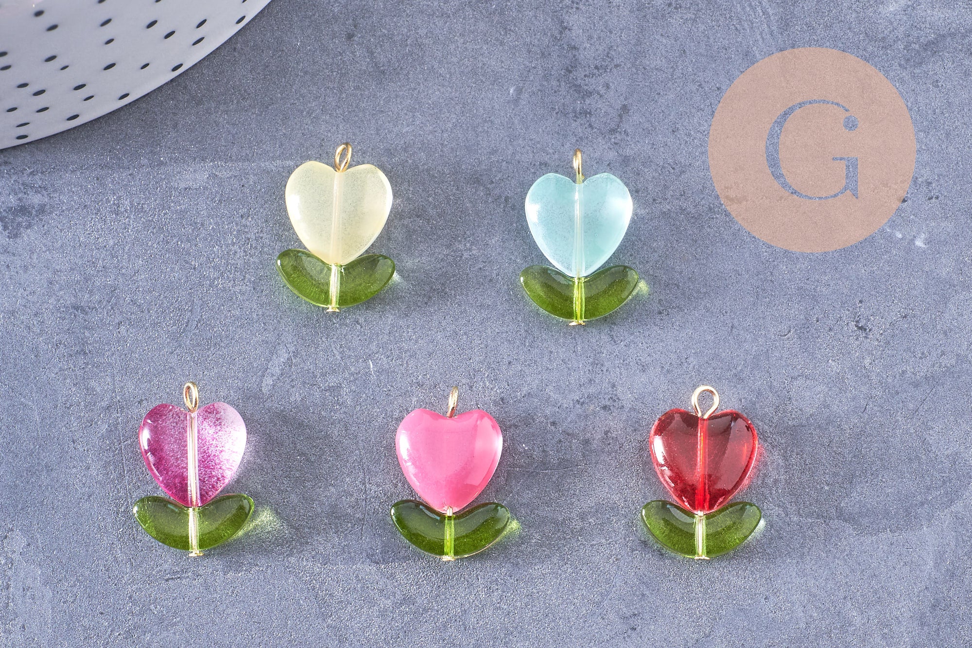 Bring a floral and poetic touch to your creations with these heart-shaped tulip charms.