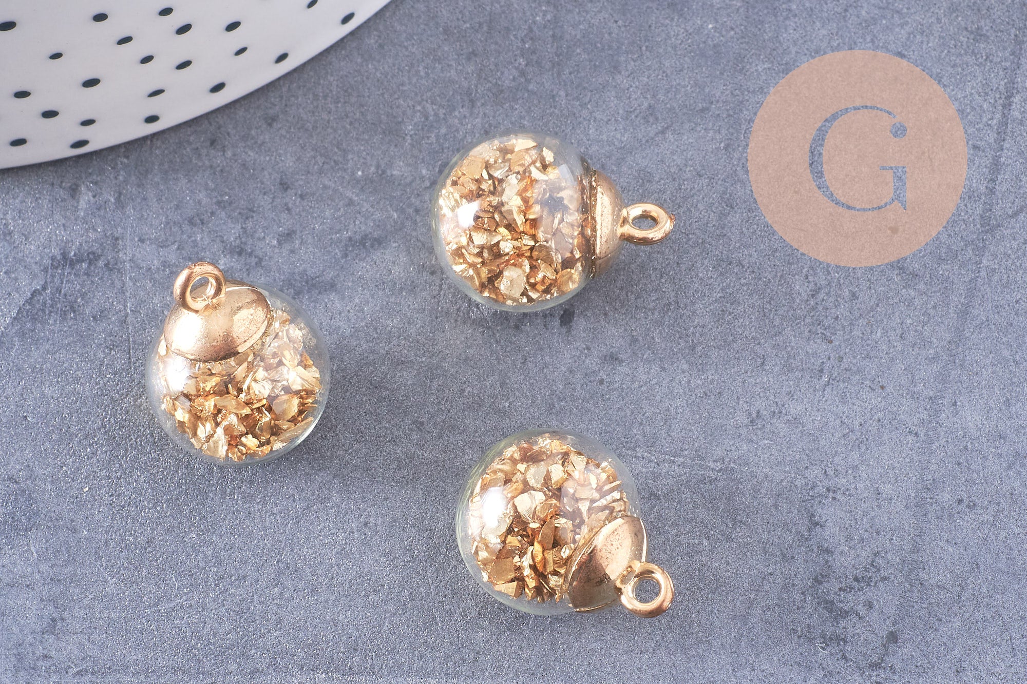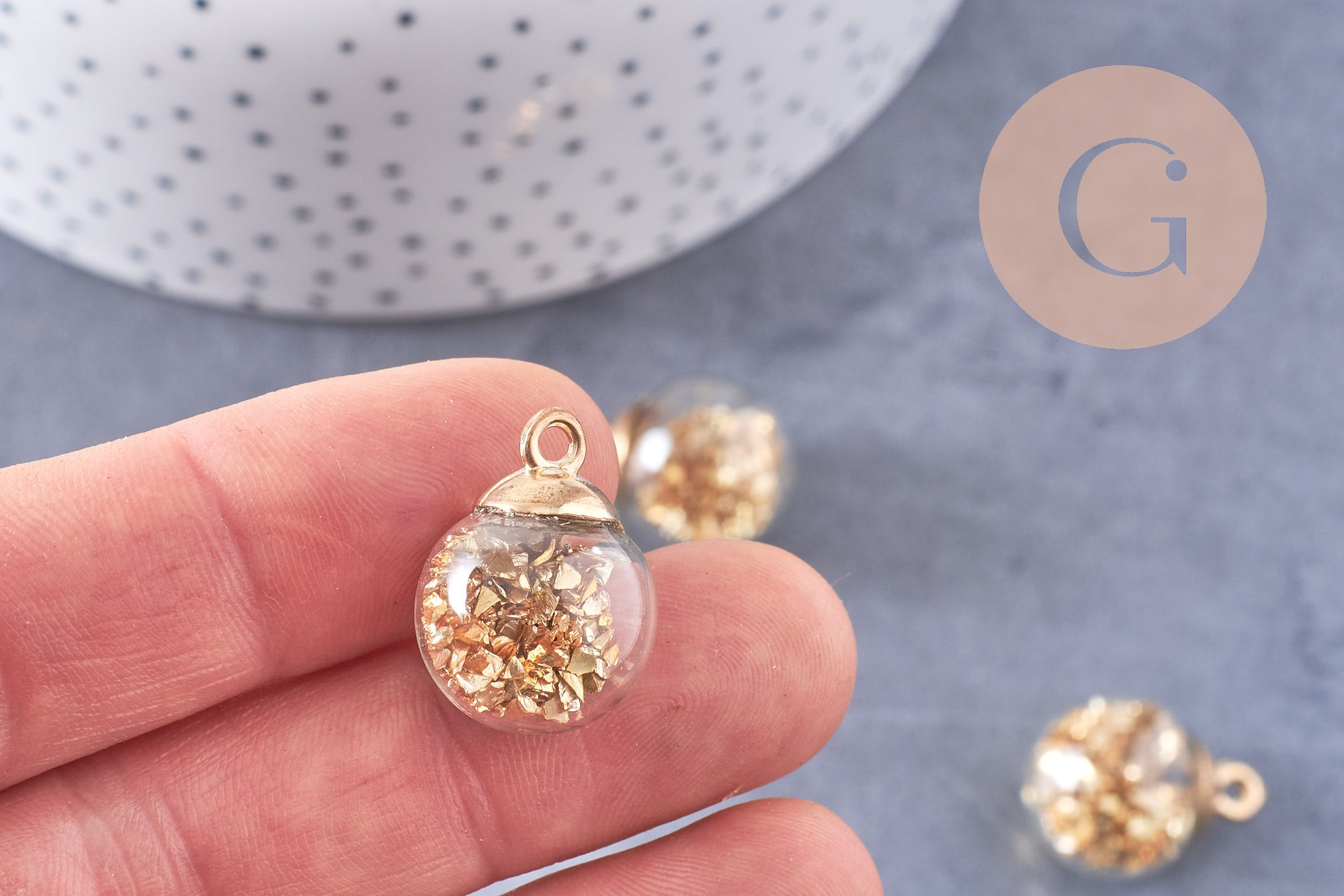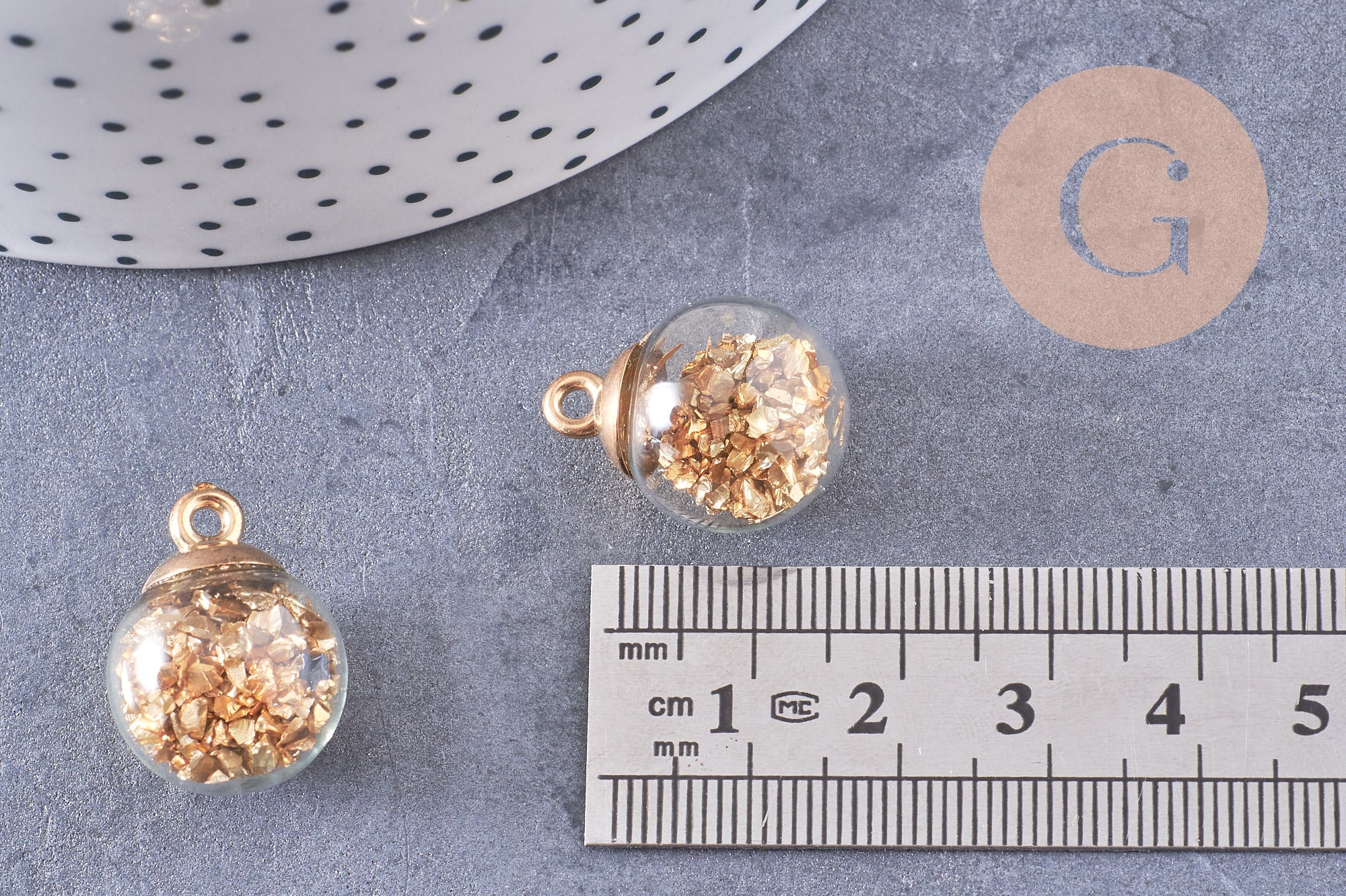 Brass and golden sand glass bubble pendant, creative supplies, transparent medallion, long necklace creation, showcase pendant, 21mm