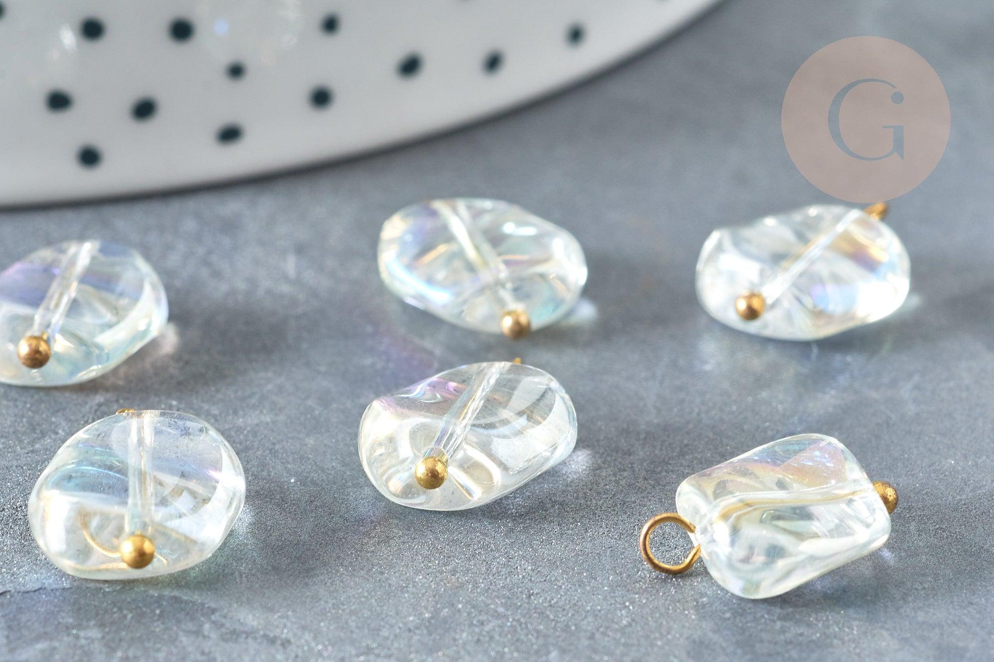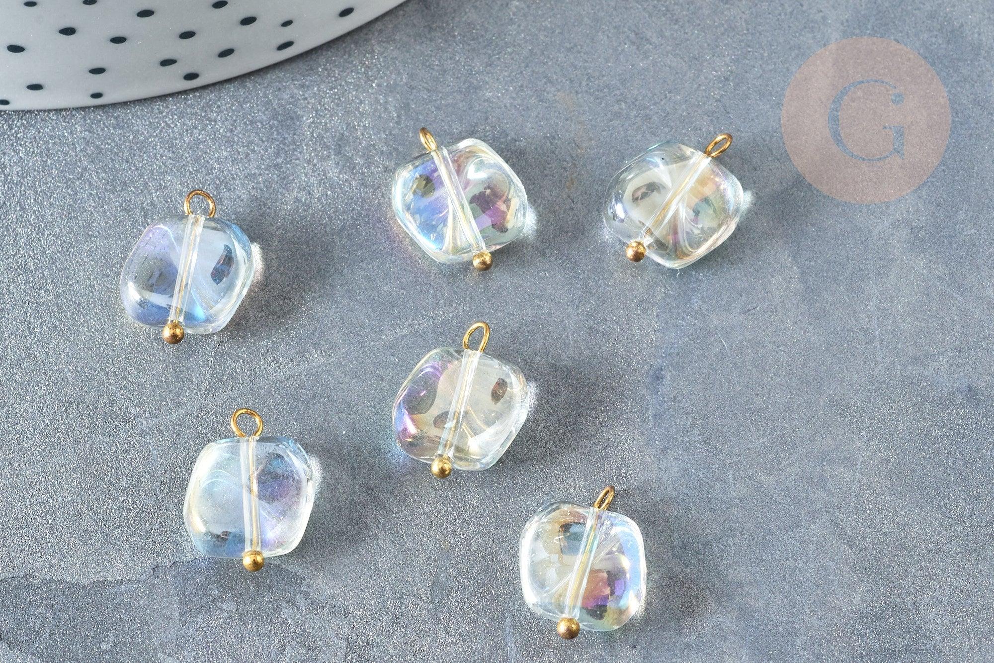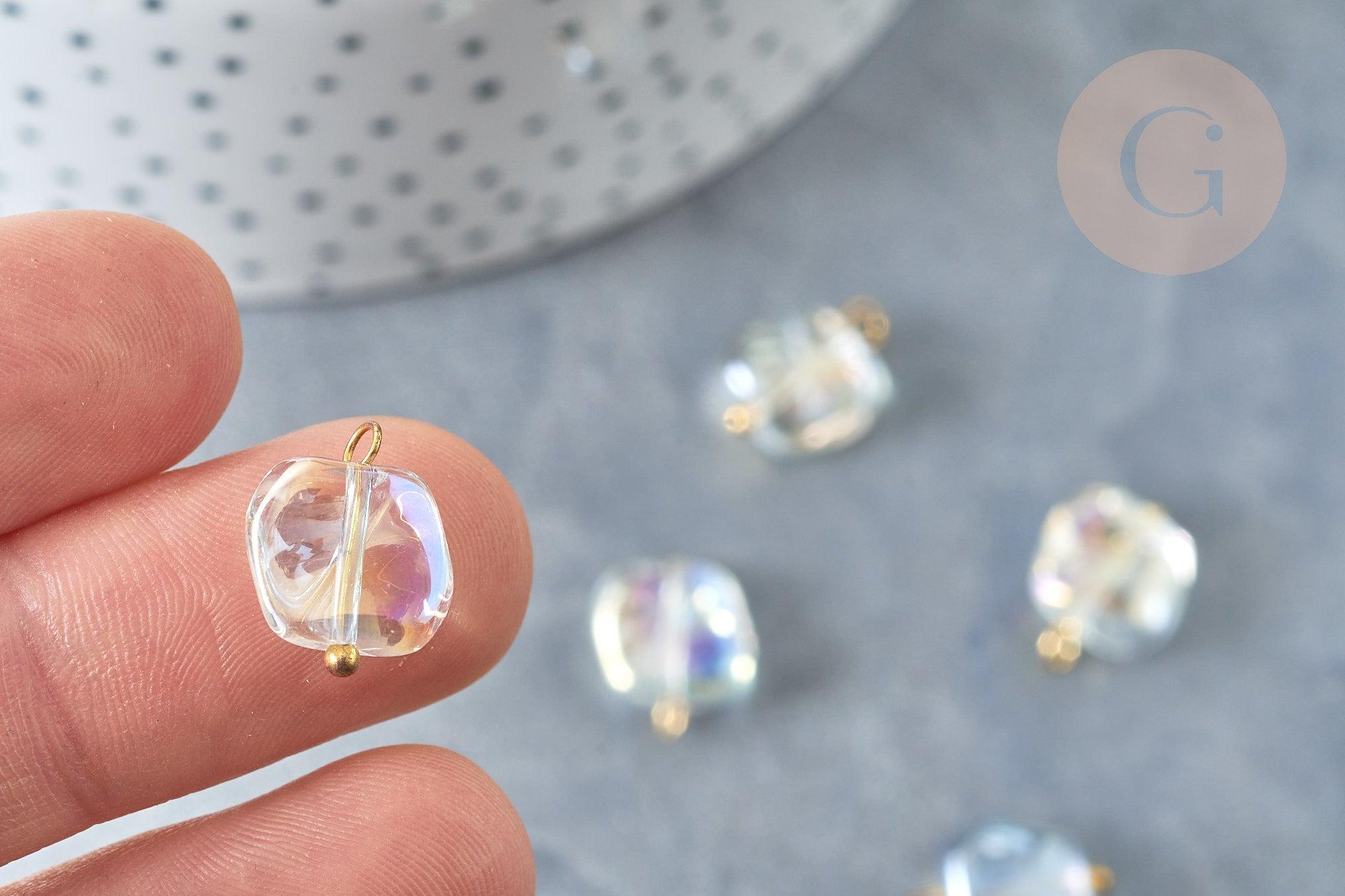 Rounded square pendant transparent glass gold-plated brass 15mm, crystal, x10 (G7842)
