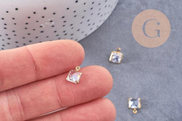 This 9mm square pendant , made of transparent crystal and raw brass , is a delicate charm ideal for adding a touch of refinement to your jewelry creations.