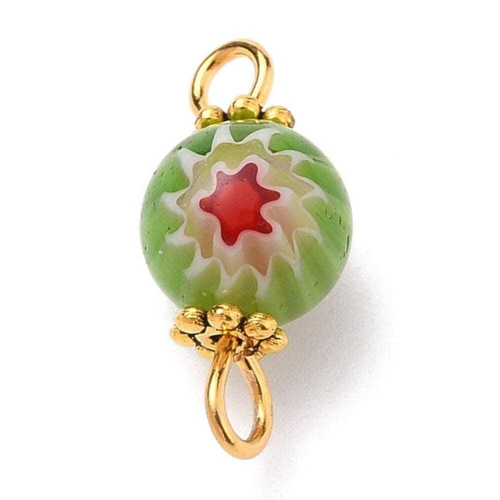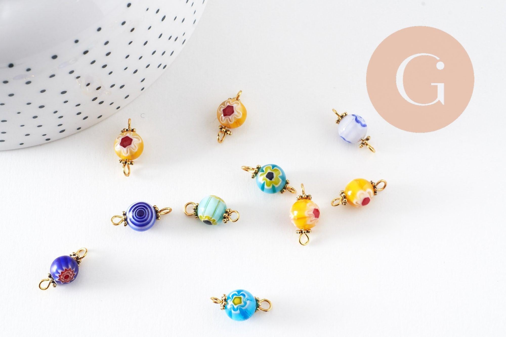 Bring an explosion of color to your DIY creations with these stunning round connectors made of millefiori glass and gold-plated zamac . Each piece is unique with its colorful floral patterns encased in glass, for joyful and bright jewelry.