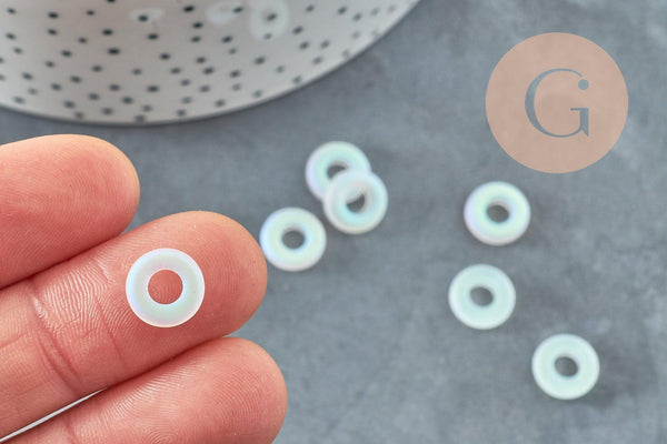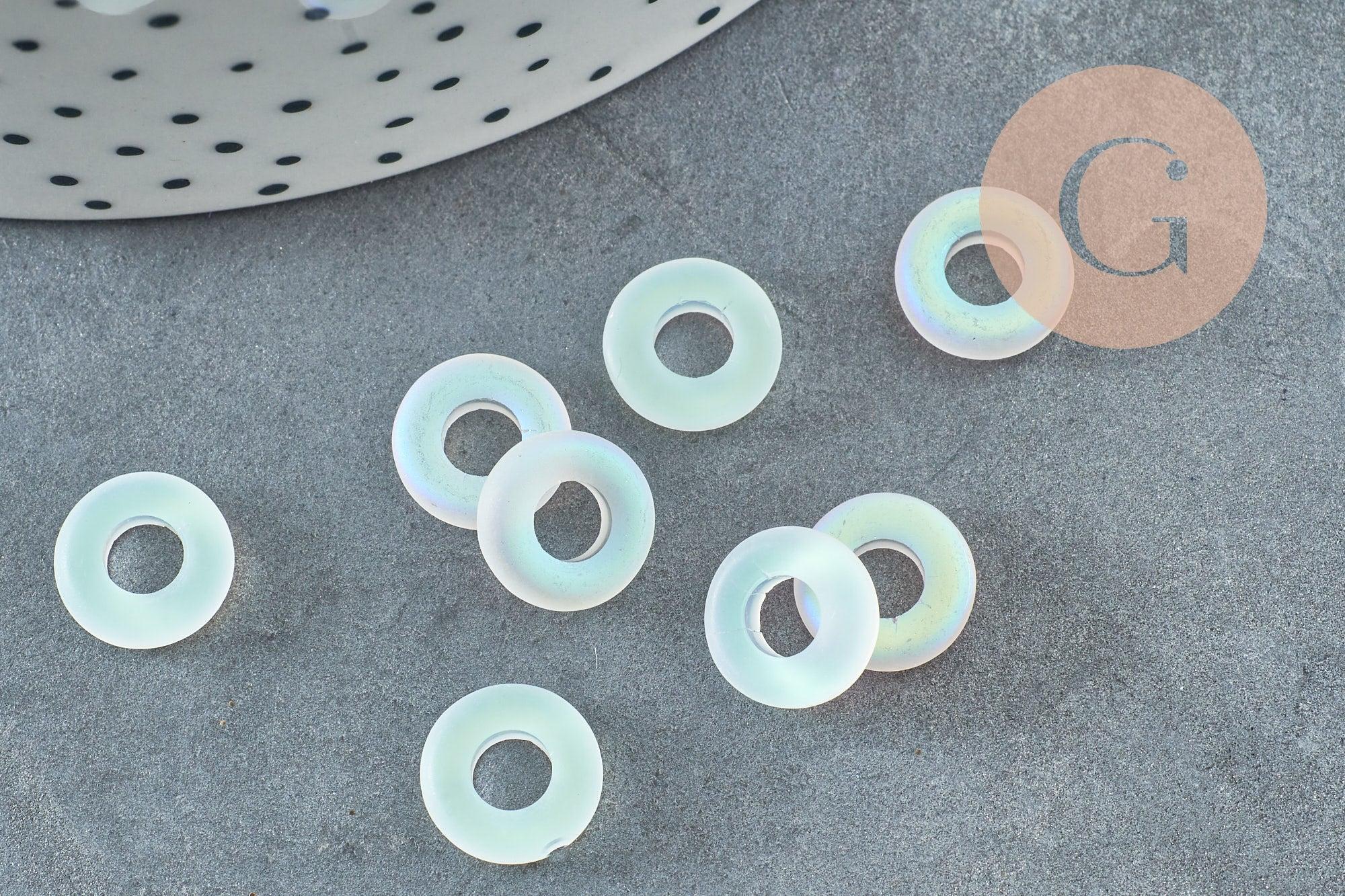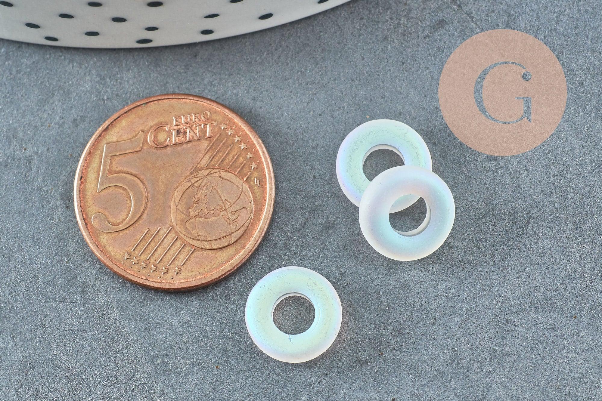 Fall for these iridescent transparent and white glass pendants in the shape of a donut.