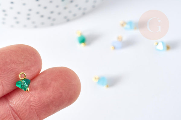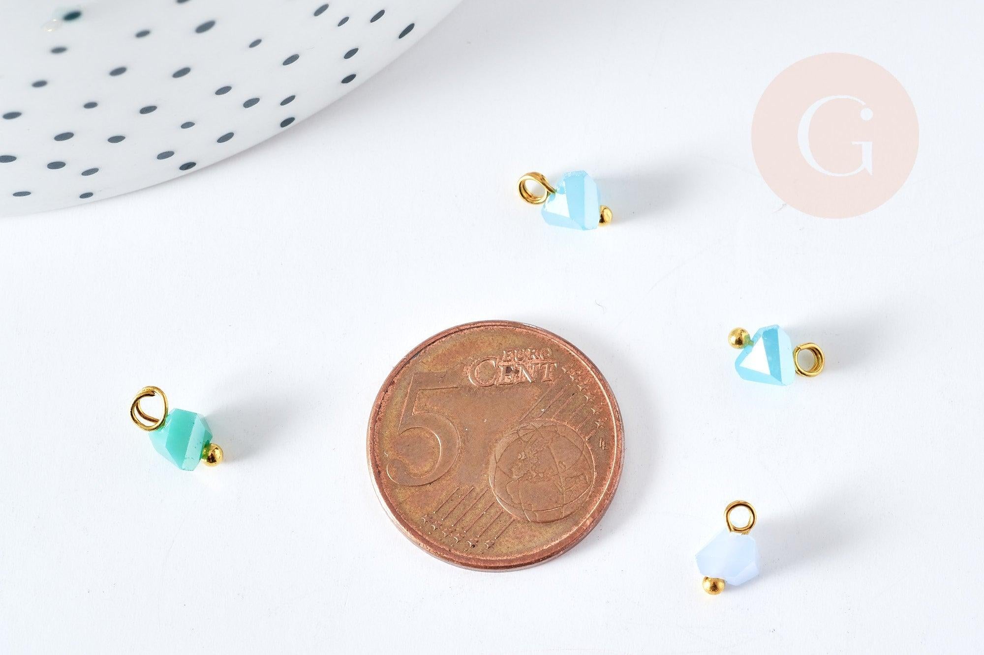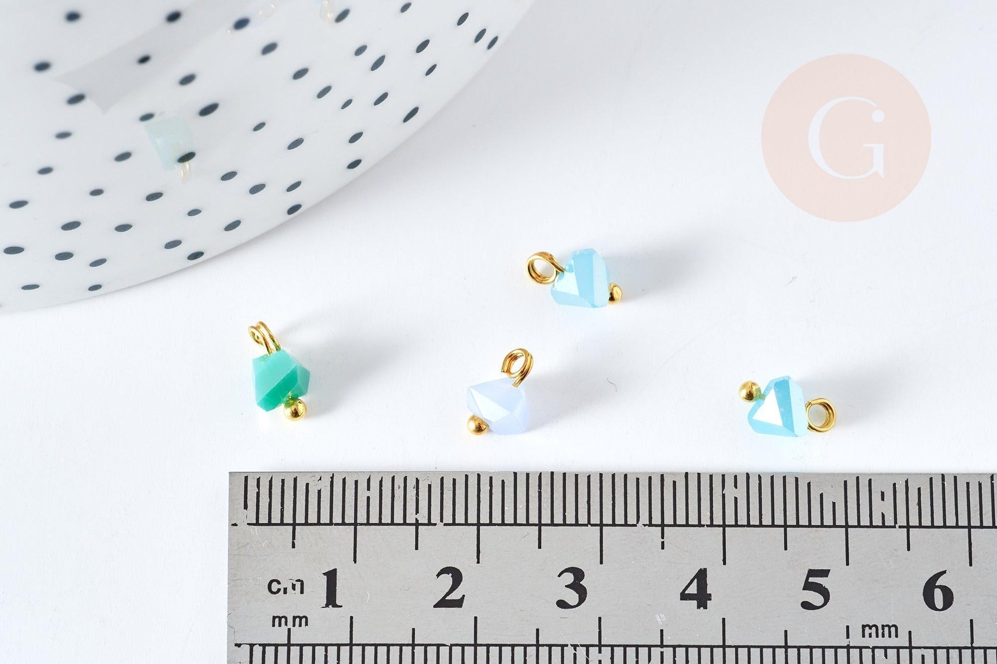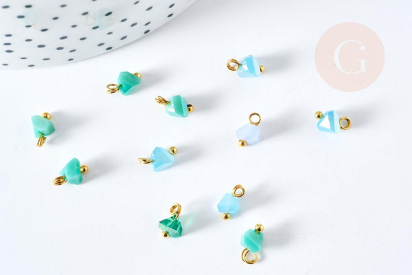 Fall for these pretty charms composed of triangular crystal pearls in blue-turquoise shades, on a golden brass support.