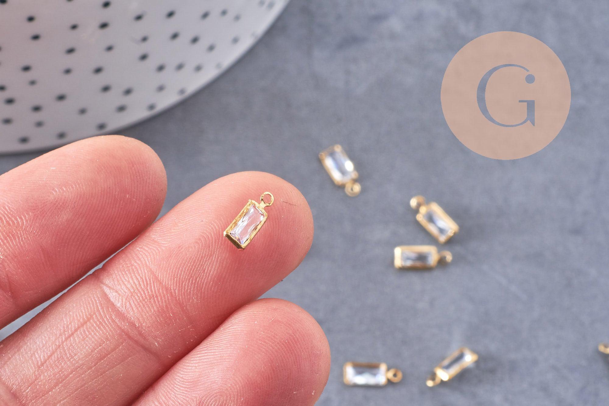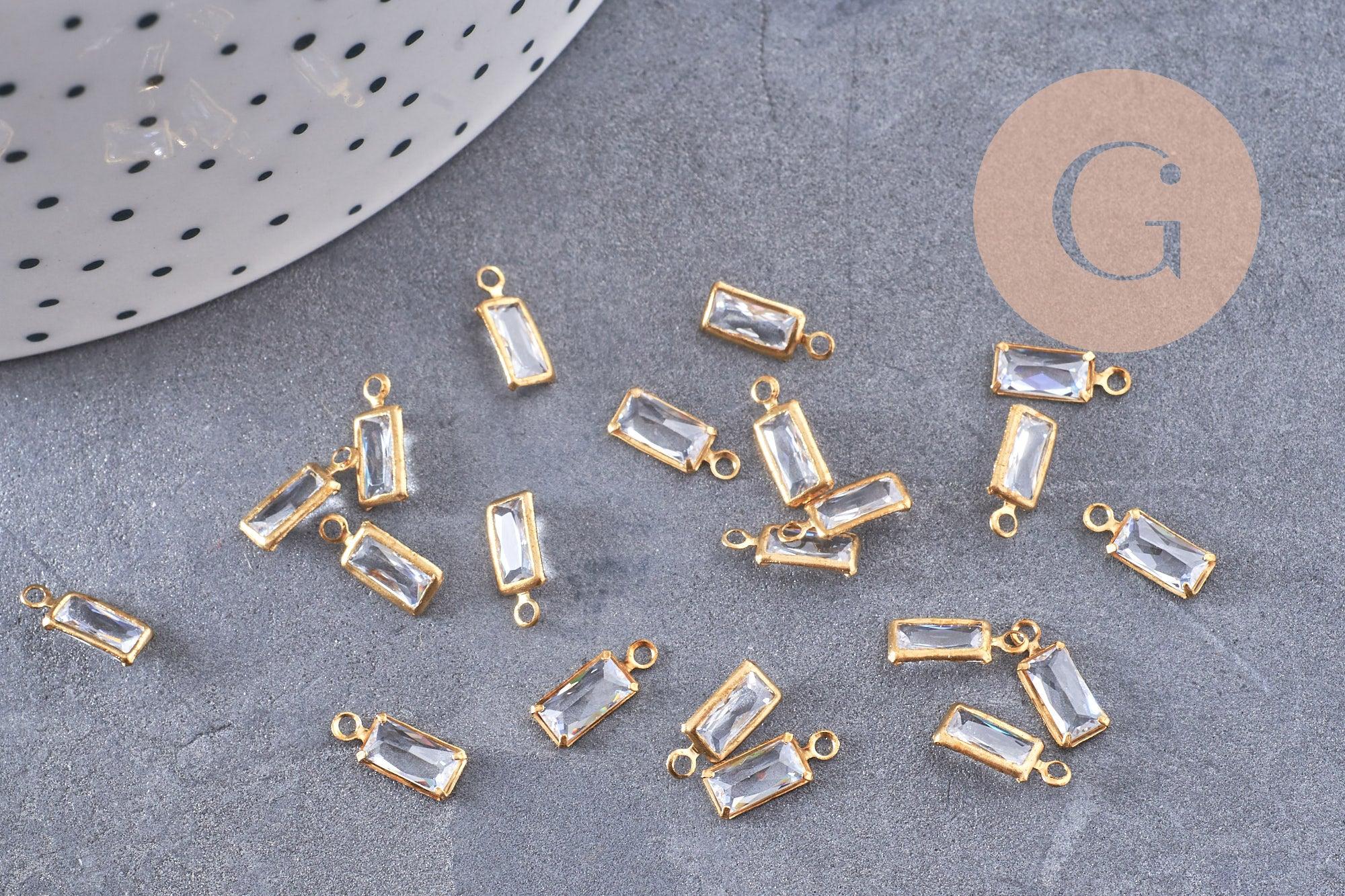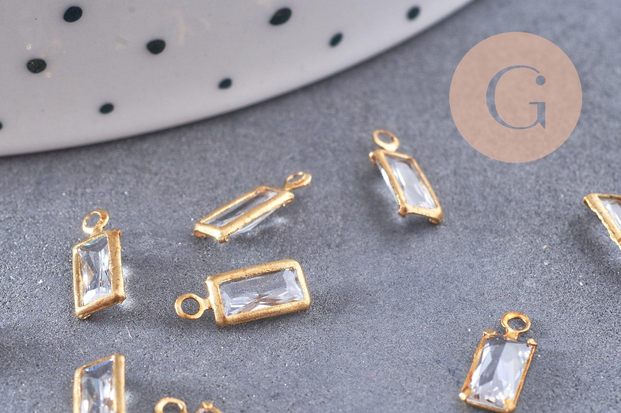 Pendentif rectangle cristal laiton brut 9mm, une délicate breloque en cristal x10 (G10220)