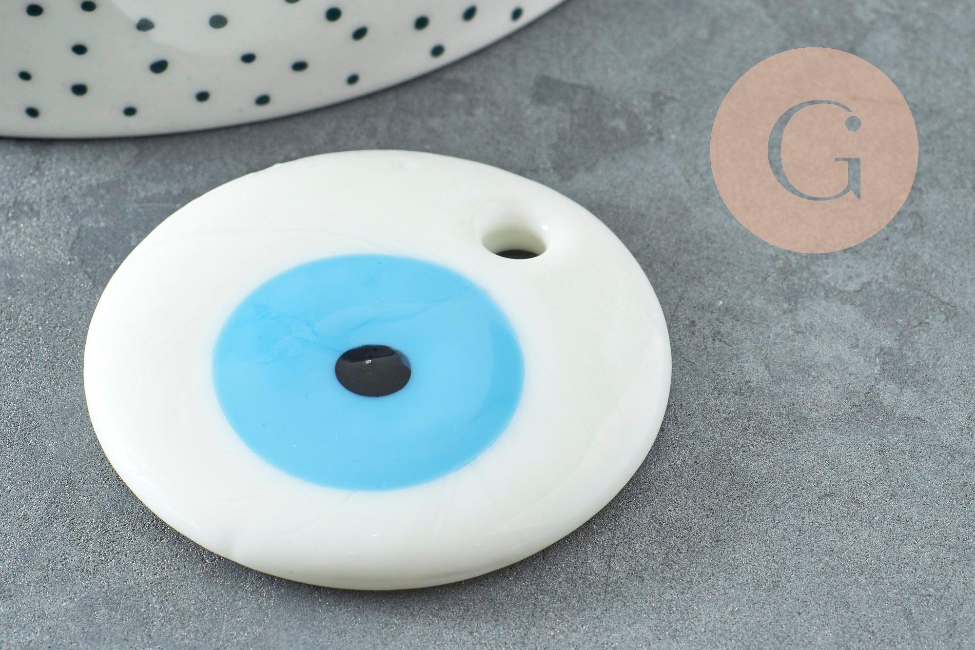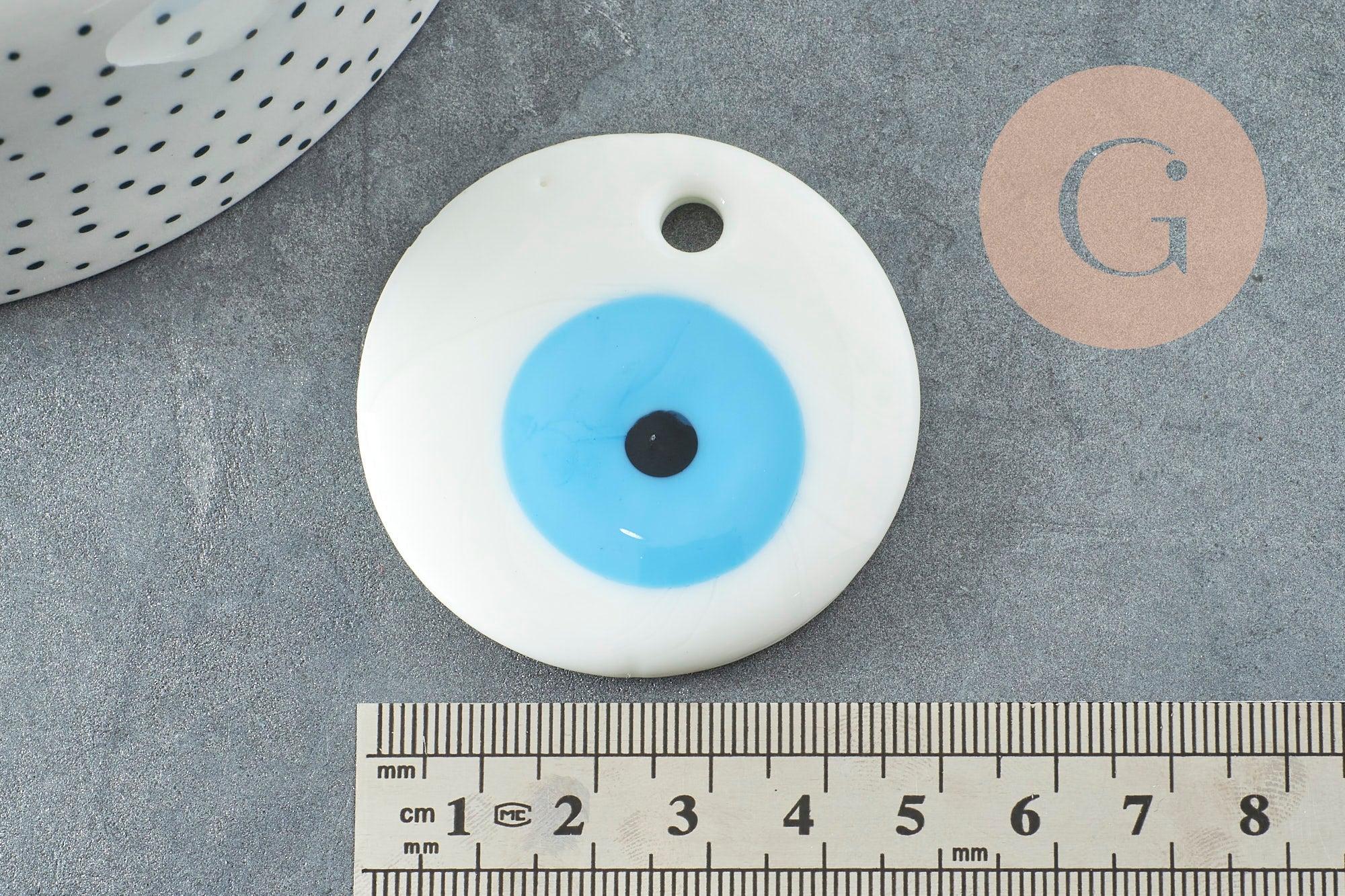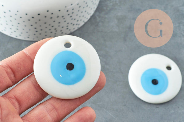 Pendentif rond Mauvais Oeil verre blanc 50mm, x1 (G9437)