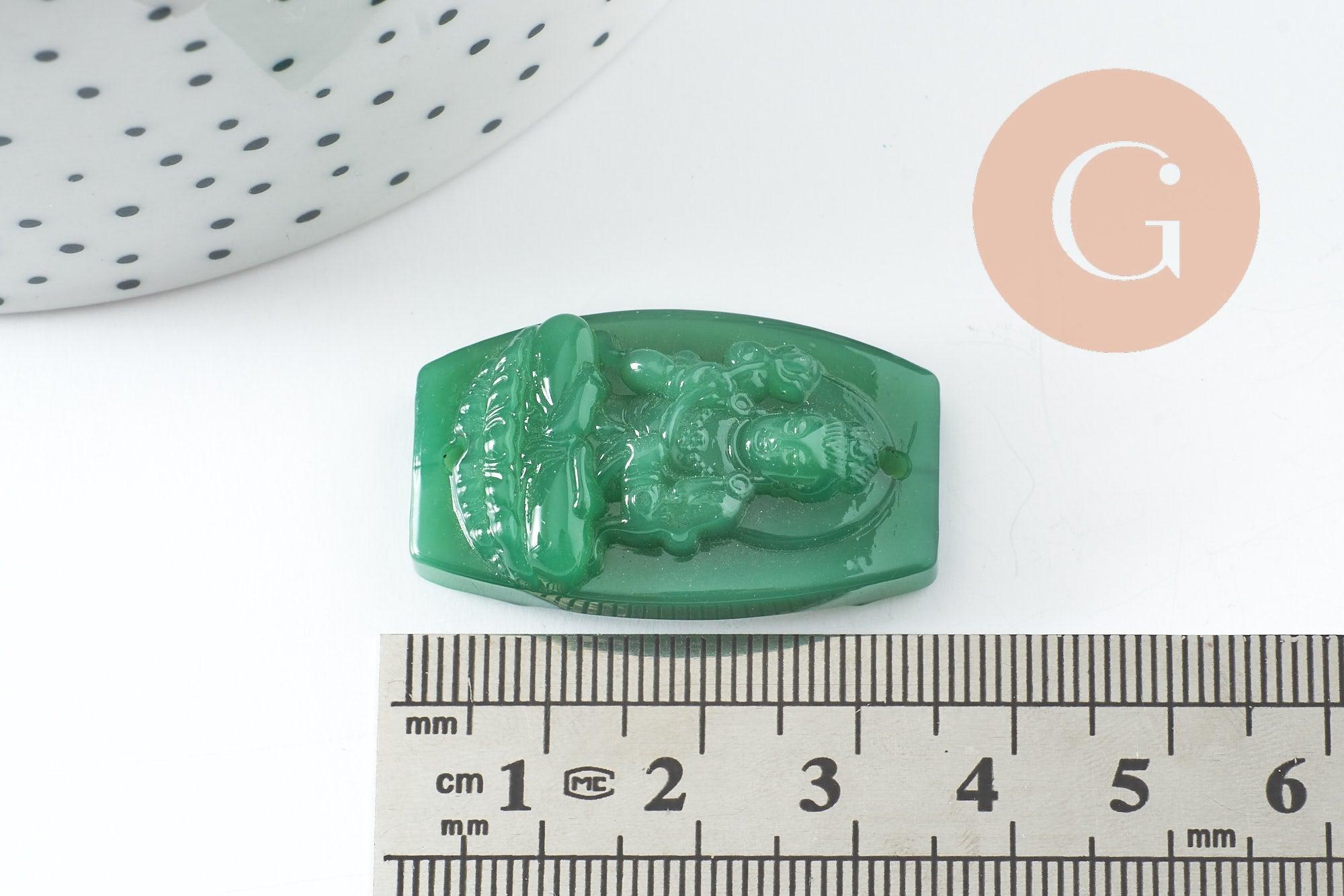 Pendentif tête de Bouddha verre imiation jade vert 34mm, perle inde bouddhisme spiritualité,perle voyage inde, x1 G4325