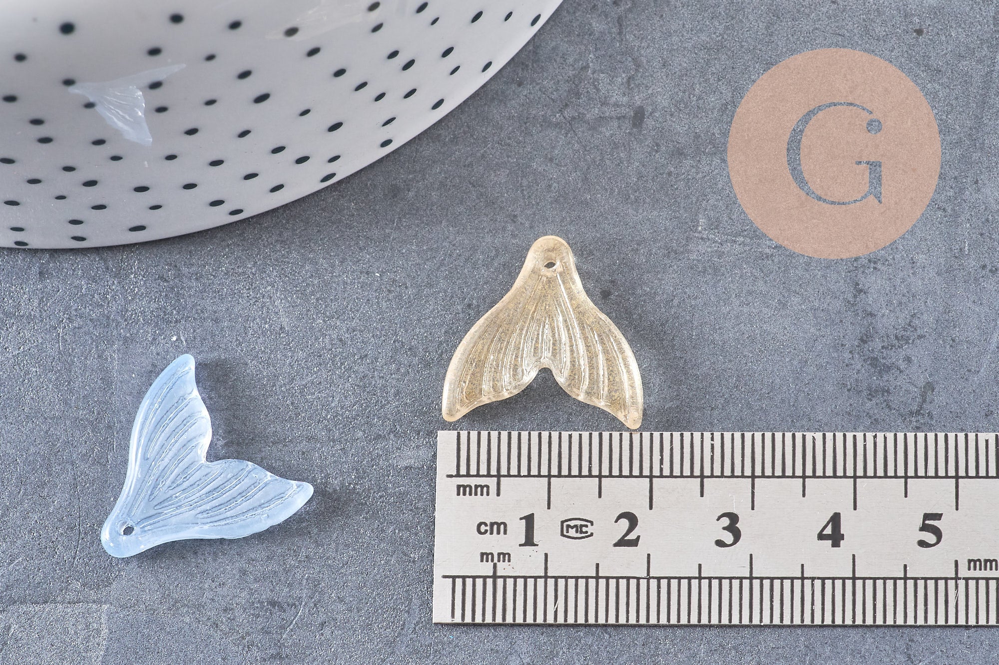 Add a colorful, marine touch to your creations with these multi-colored glass fishtail pendants .