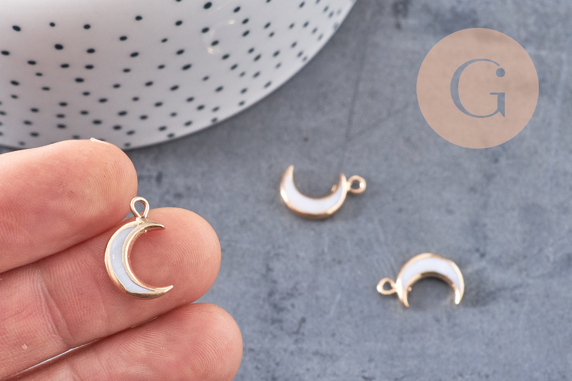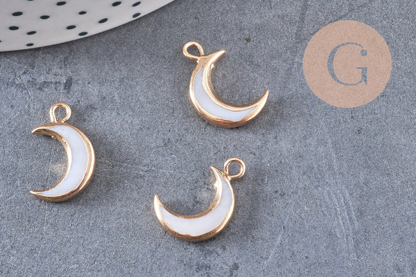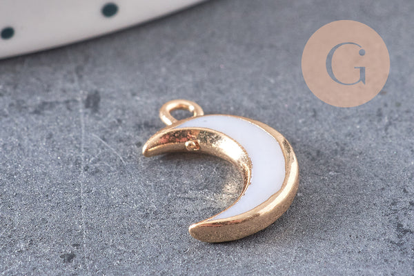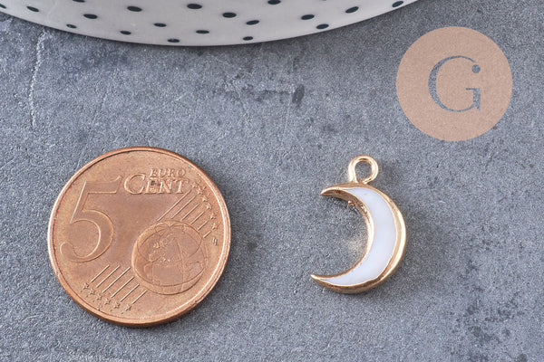 Natural white mother-of-pearl moon charm in gold-plated brass 16.5mm, x1 (G2870)