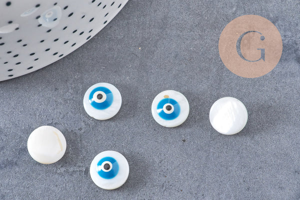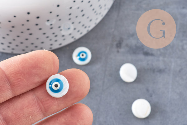 Fall for this set of 10 round white mother-of-pearl beads representing the eye of luck, To customize your jewelry, and other textile or soft leather accessories,