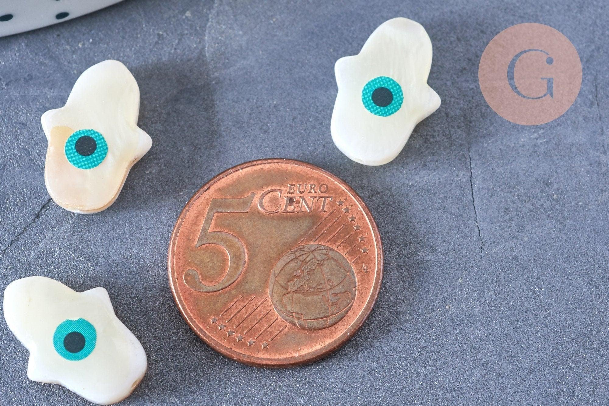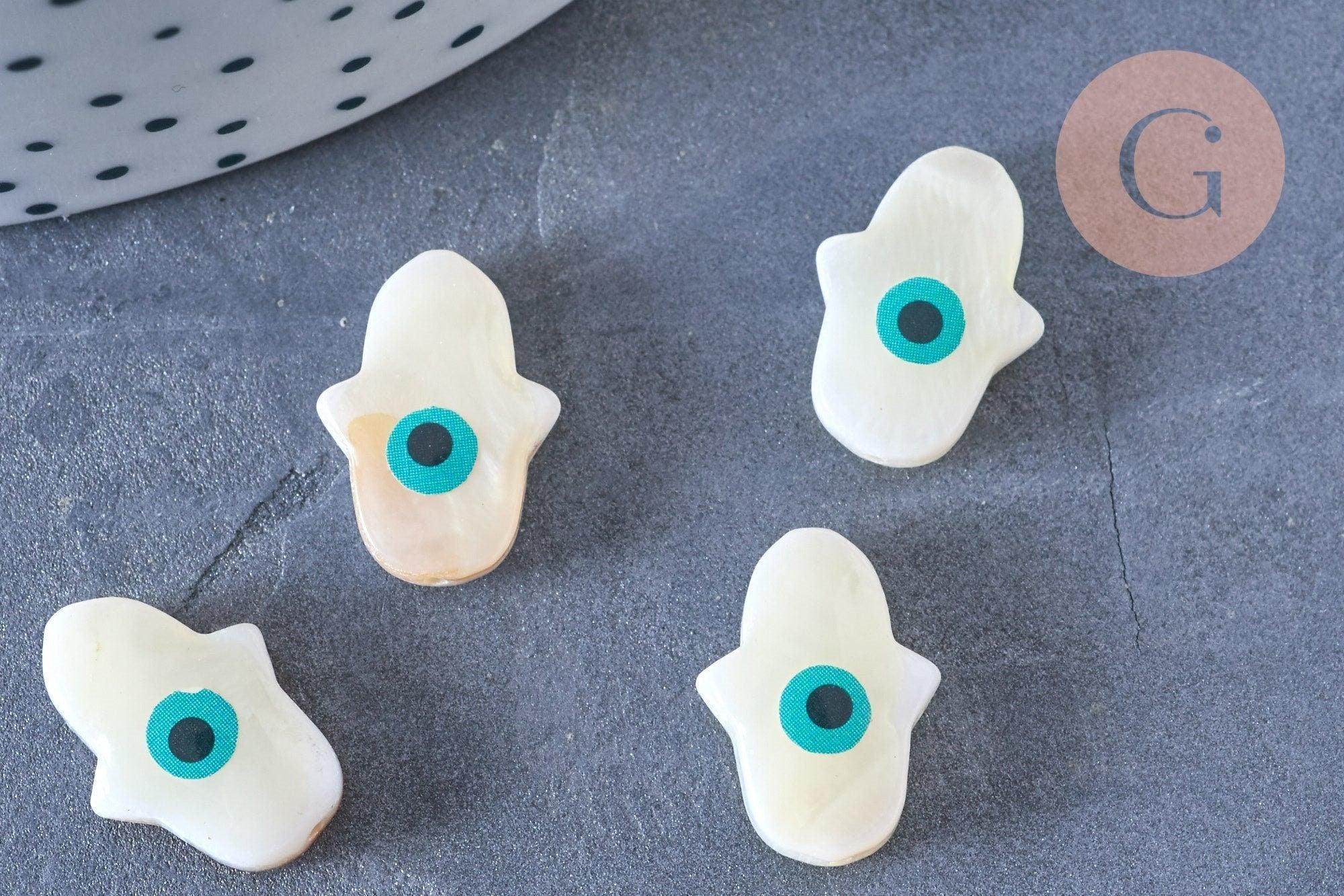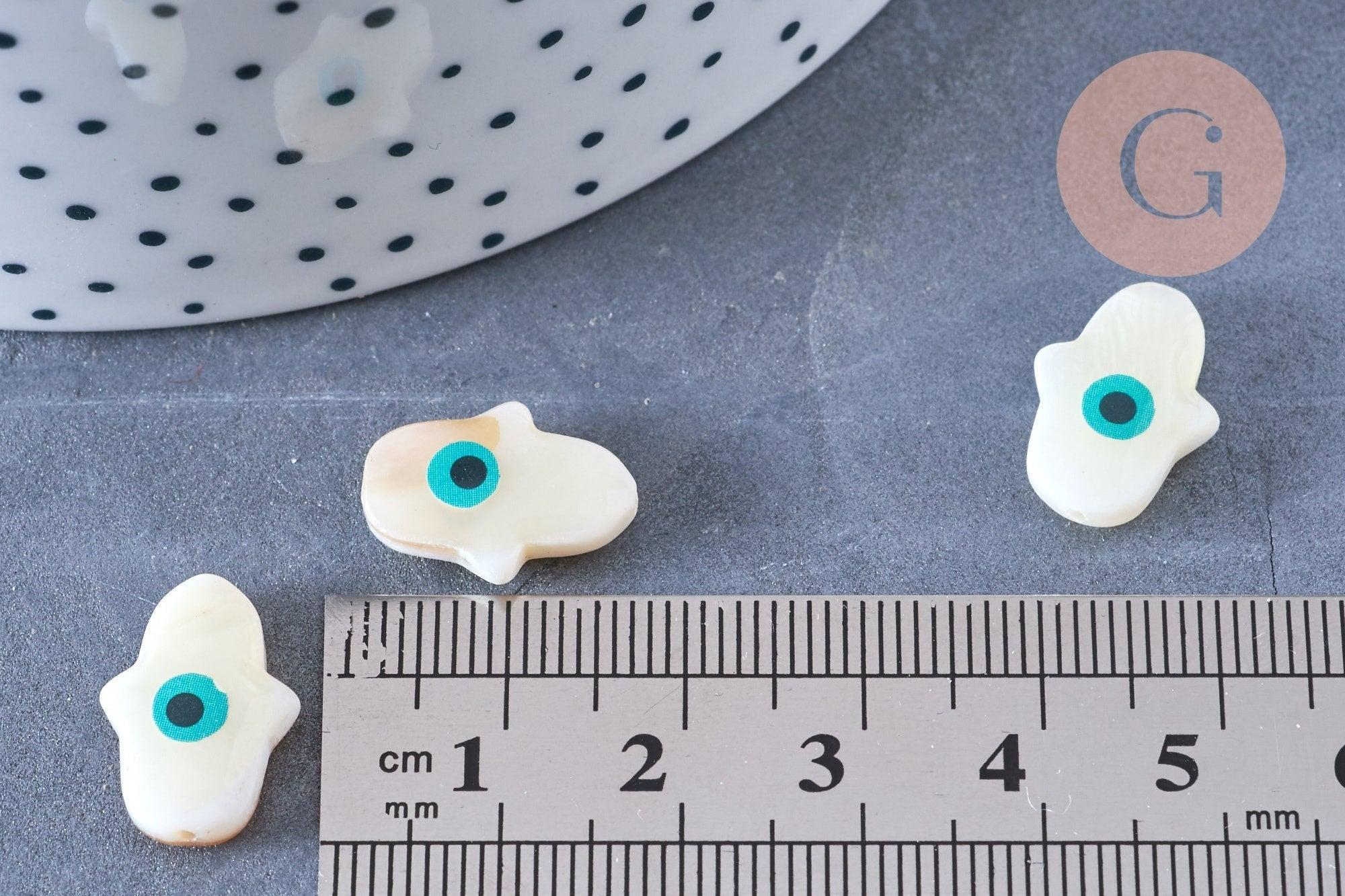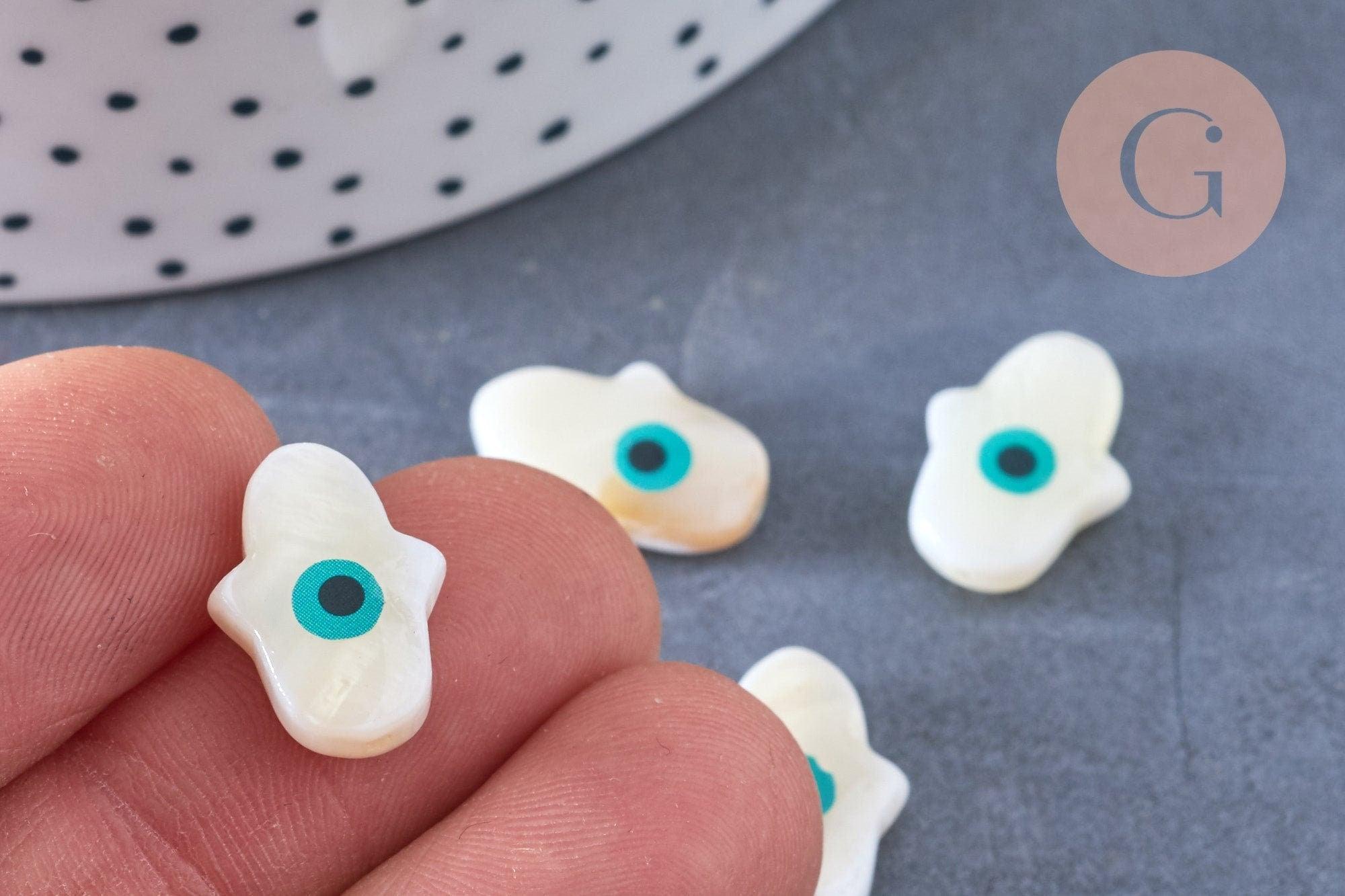 To customize your jewelry and other textile or soft leather accessories, go for this white mother-of-pearl hamsa hand bead representing the eye of luck.