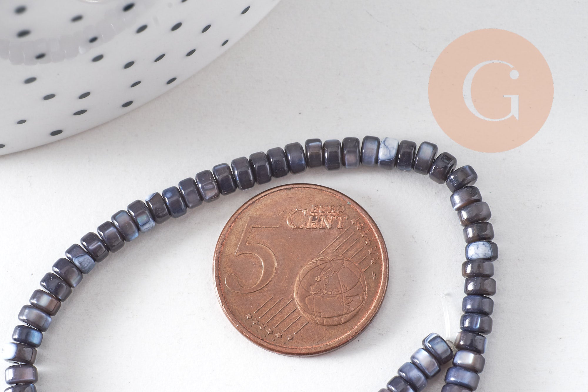 Perle nacre noire naturelle heishi, tube coquillage ivoire, 2x4mm, fil de 95 perles, x1 (G5417)