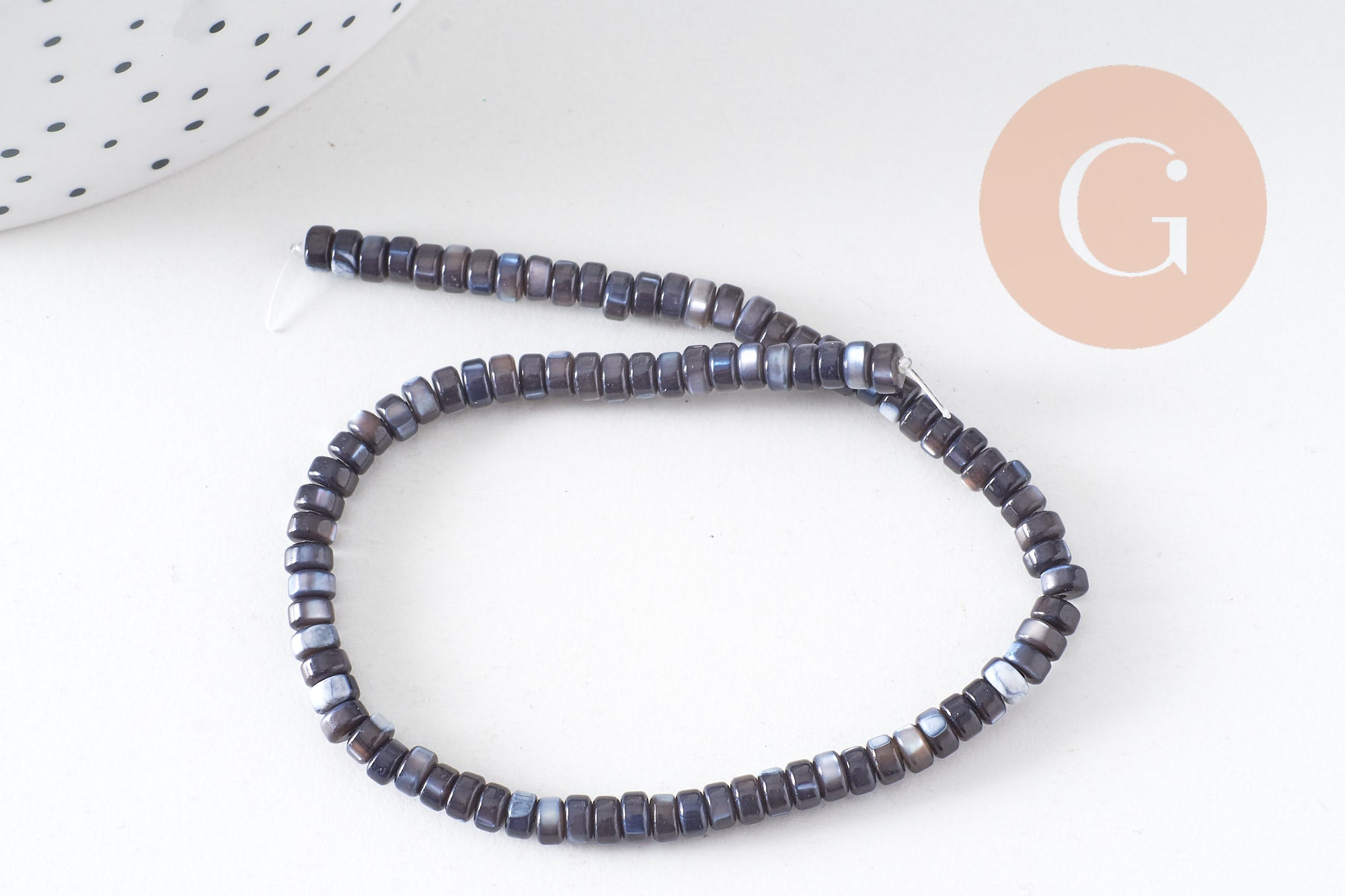 1 full strand of heishi rondelle beads in natural mother-of-pearl dyed black