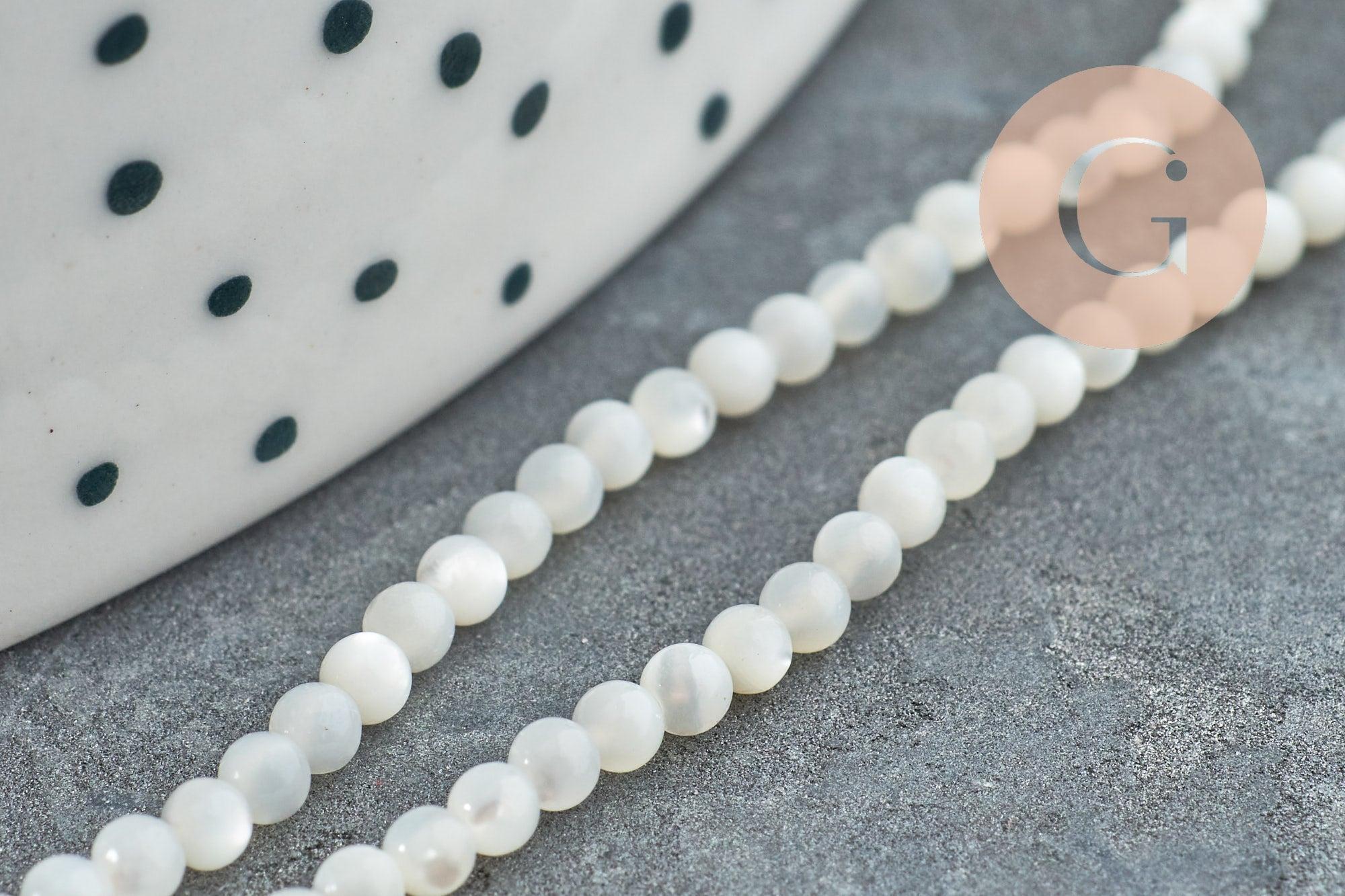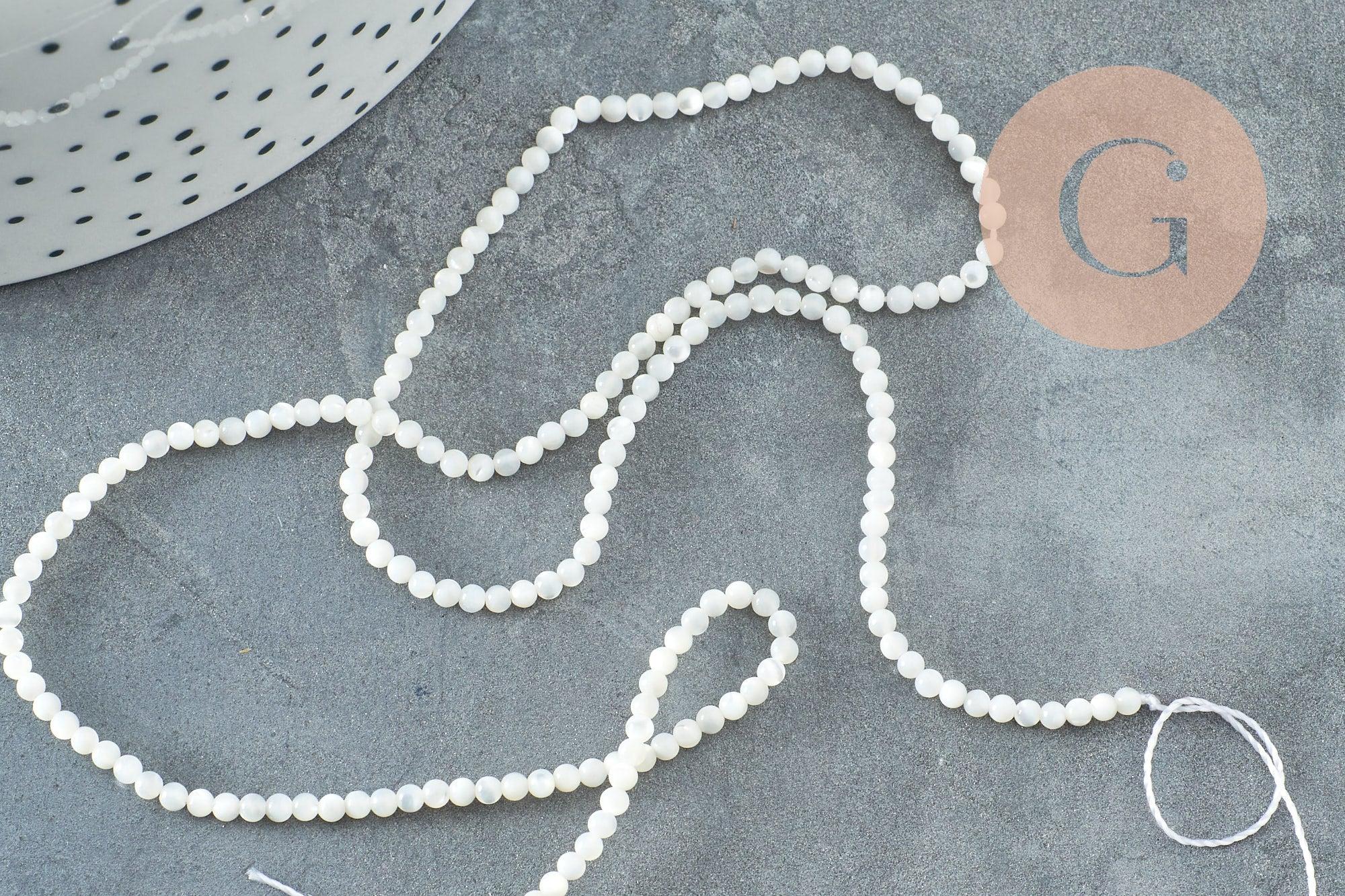 Perle ronde nacre coquillage blanc 2mm, x1 fil de 40cm (G5590)