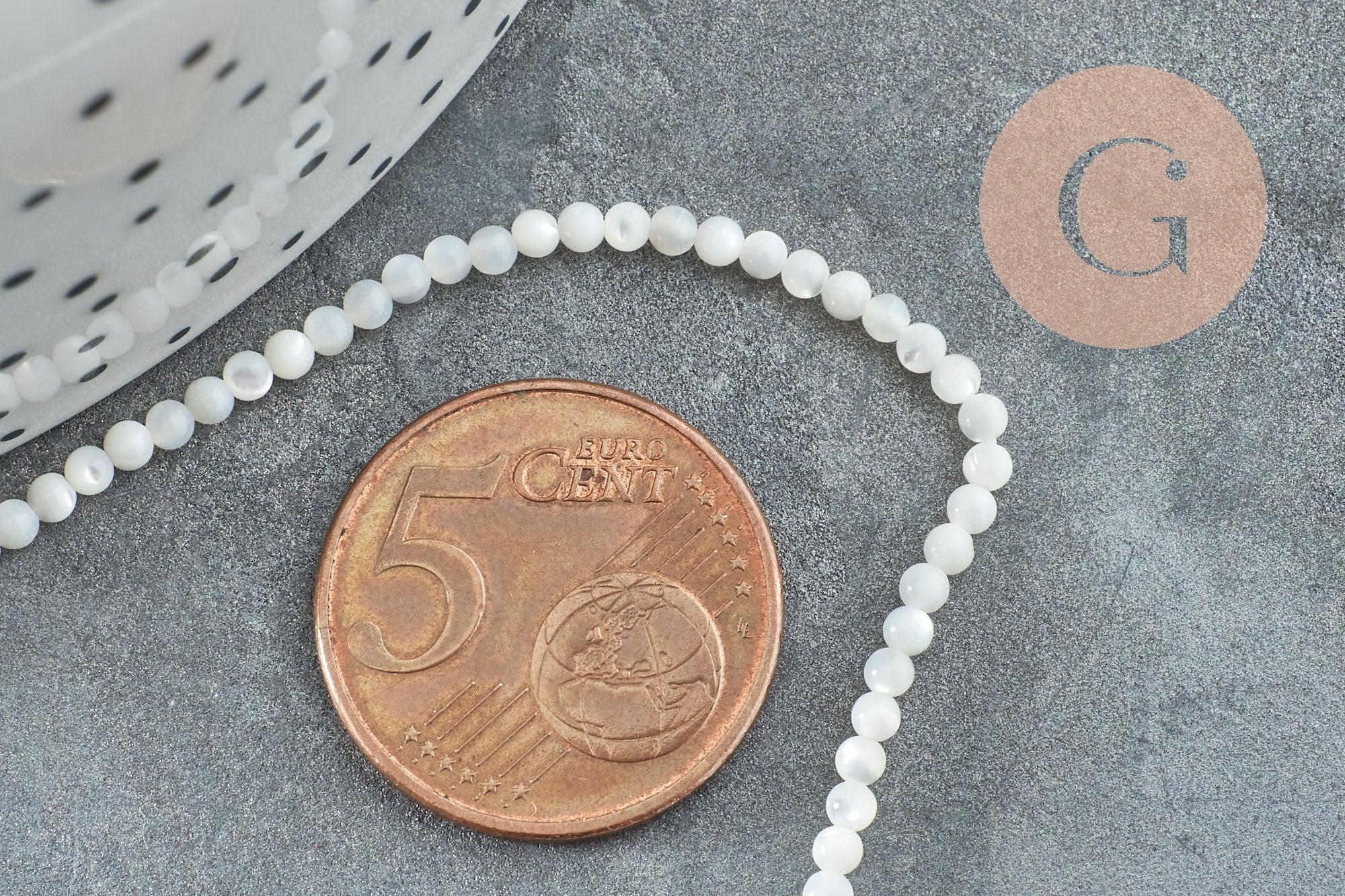 Round white mother-of-pearl shell bead 2mm, x1 strand of 40cm (G5590)