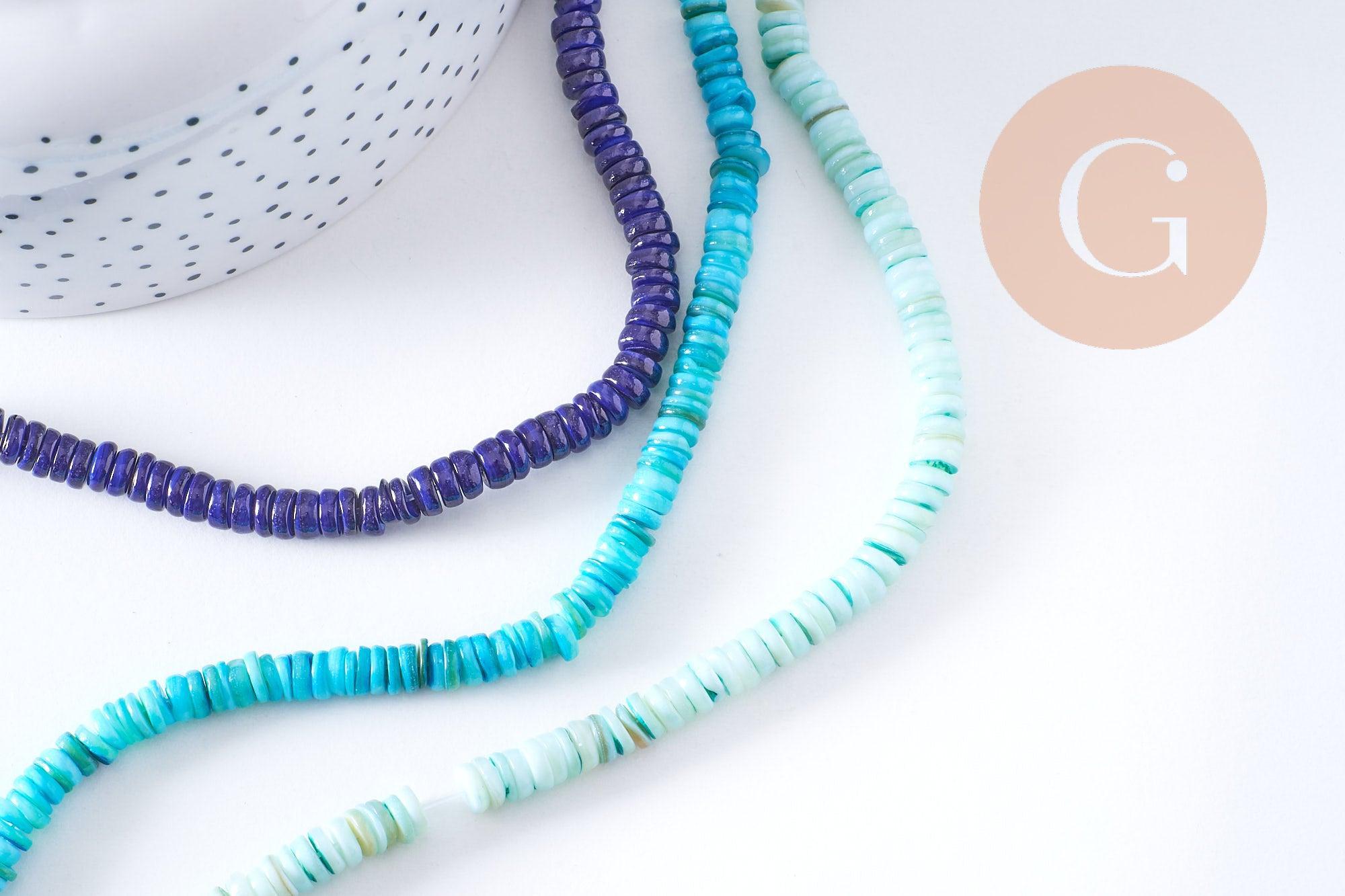 Bring depth and a chic seaside spirit to your creations with these blue-tinted natural shell heishi beads. Their irregular finish and intense hue make them an ideal supply for elegant and trendy marine-inspired jewelry .