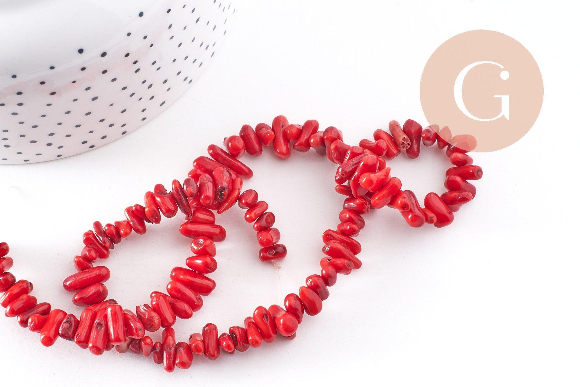 beads in imitation red natural coral (sea bamboo) on a 38 cm (15"15) wire