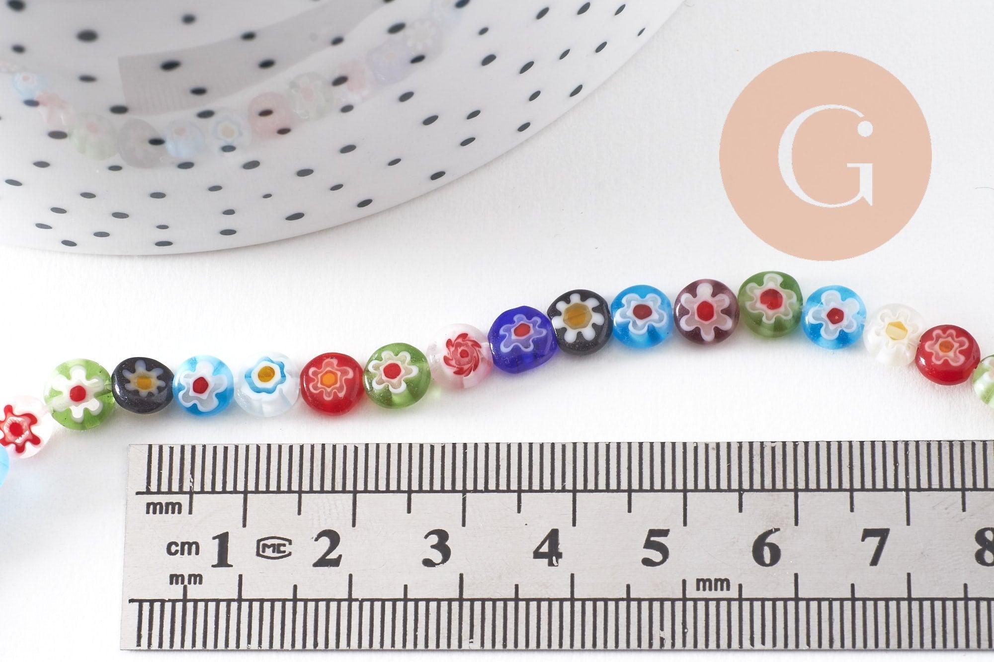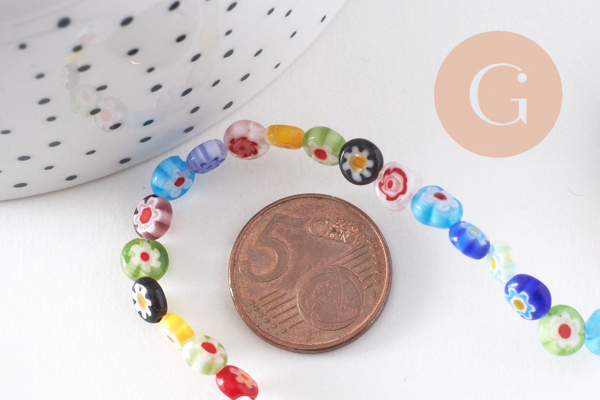 Perle cercle verre millefiori 6mm, perle verre chance, perle artisanale verre, perle bijou été, fil de 35 cm, x1 (G5384)