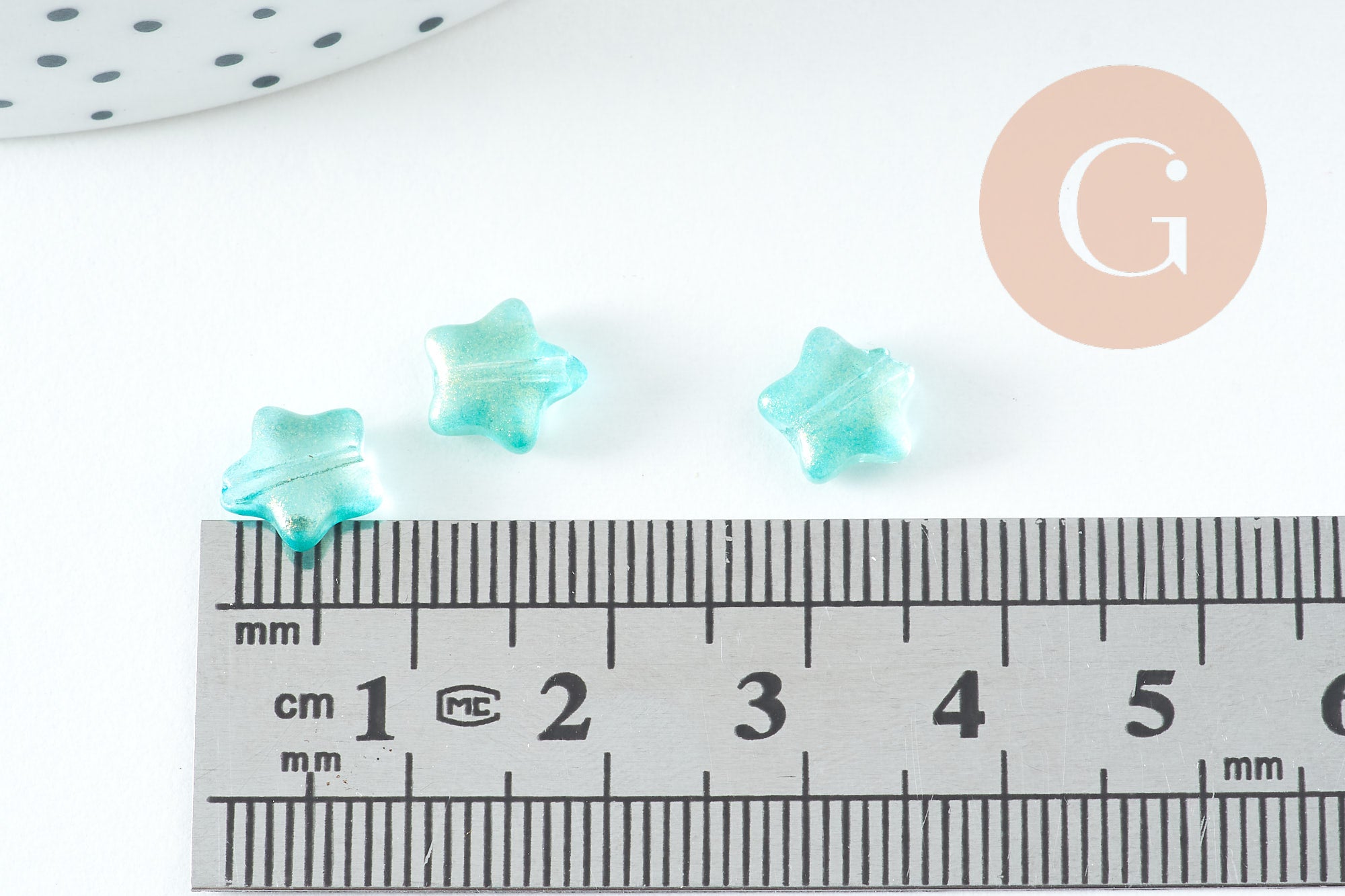 Add a celestial and sparkling touch to your DIY jewelry with these turquoise star glass beads adorned with gold powder. Their imitation jade finish gives them a precious and trendy look, ideal for your fairytale or summer creations.