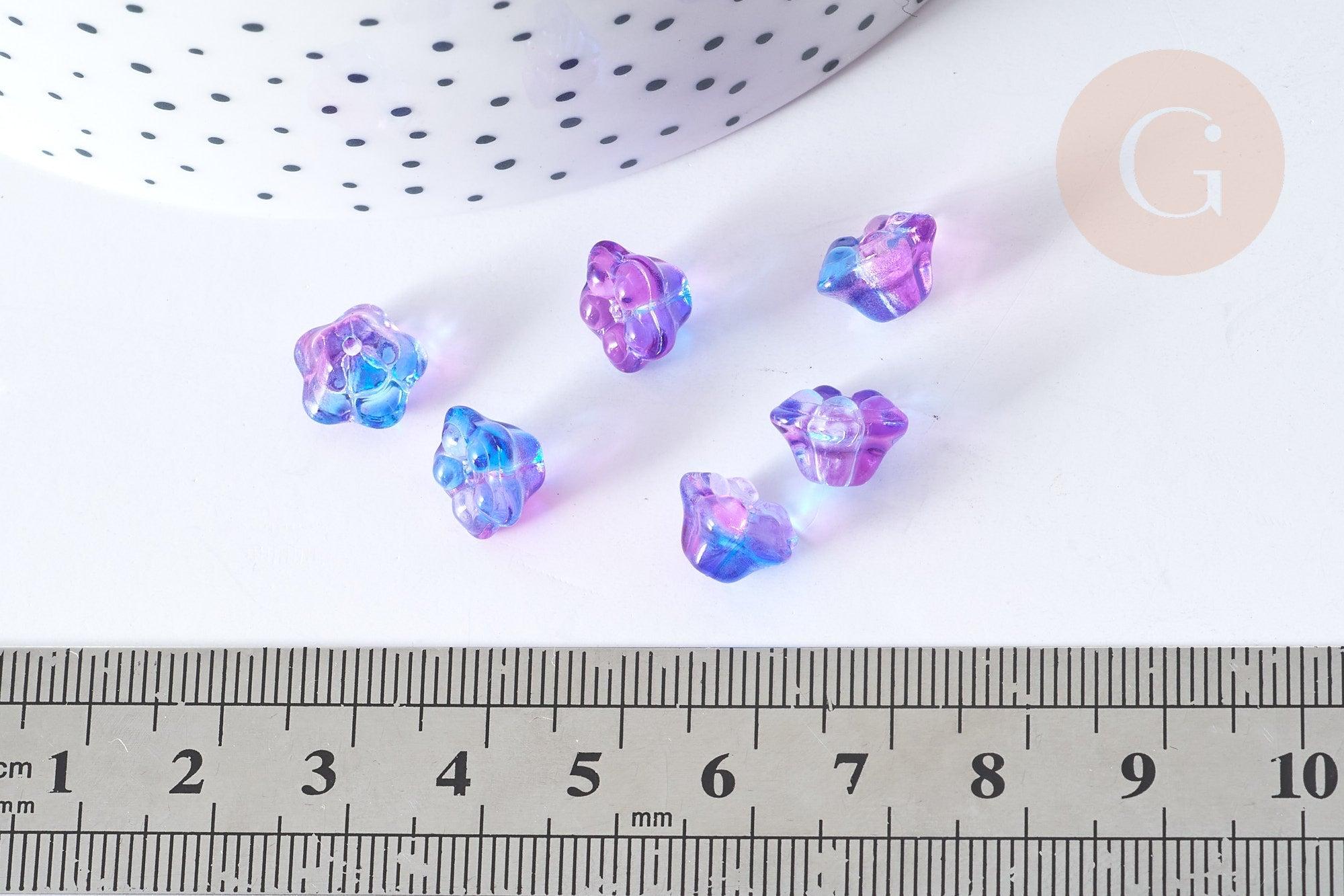 A set of transparent glass craft beads in the shape of a two-tone blue-purple flower