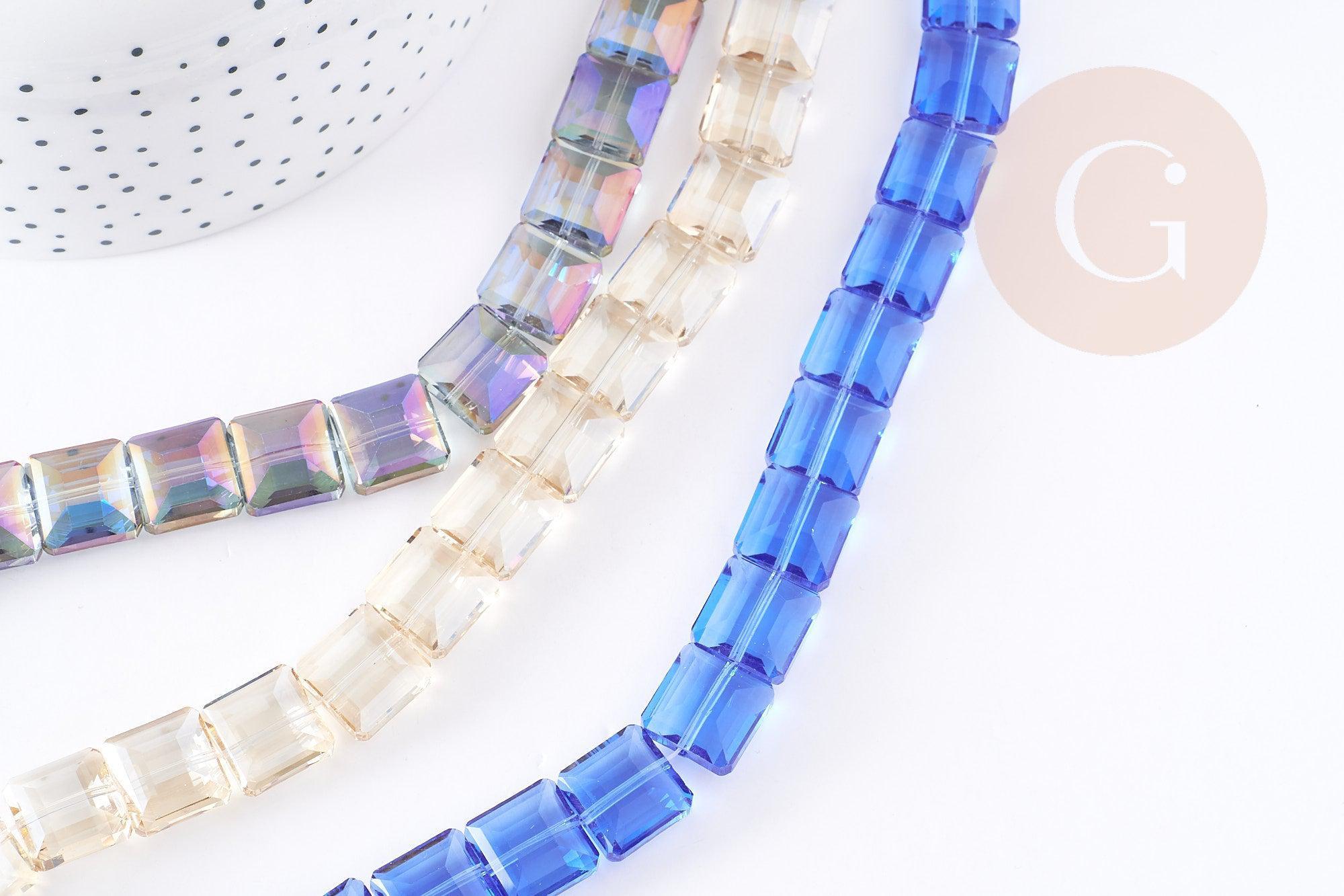 These square faceted iridescent glass beads are ideal for creating a number of DIY costume jewelry pieces.