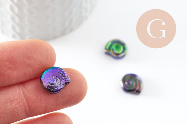 Enhance your jewelry creations with these 12mm iridescent blue shell glass beads. Ideal for designing necklaces, bracelets and earrings, these glass beads bring a unique and elegant touch to your accessories. In a set of 5, they are perfect for adding sparkle and originality to your DIY projects.