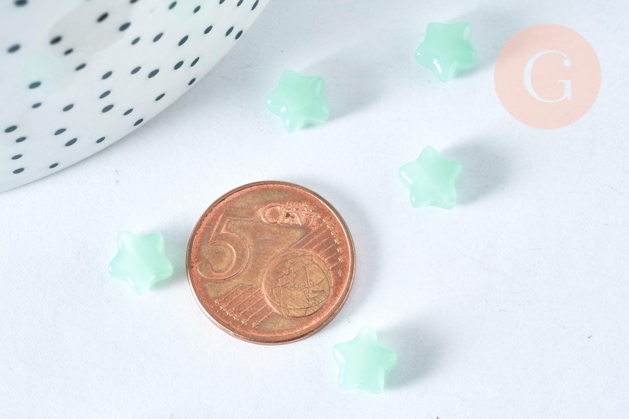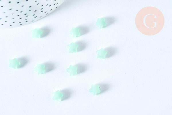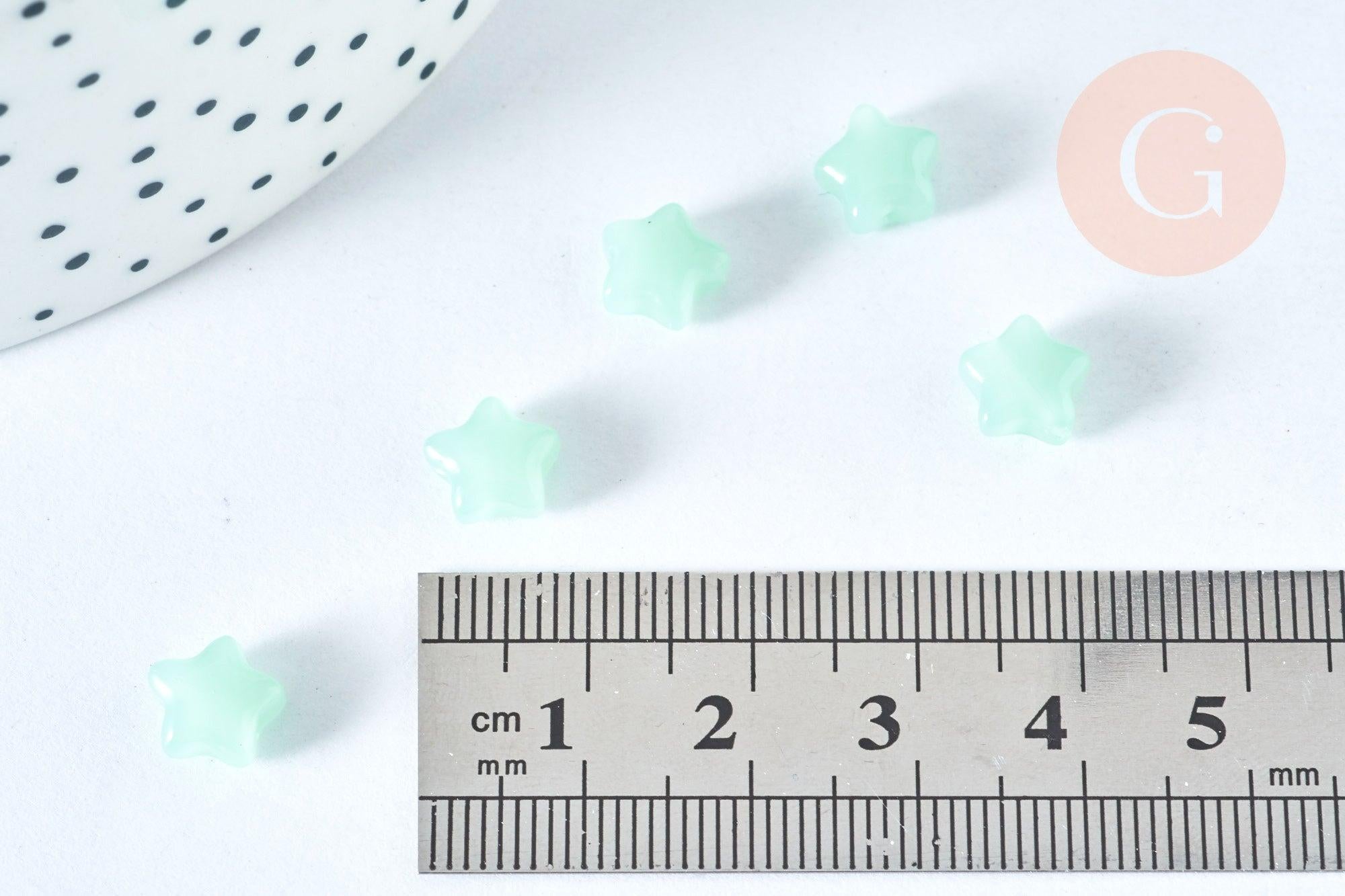 Perle verre imitation jade étoile vert clair 8mm, création de bijoux DIY, perle en verre étoile vert clair, x10 G6950