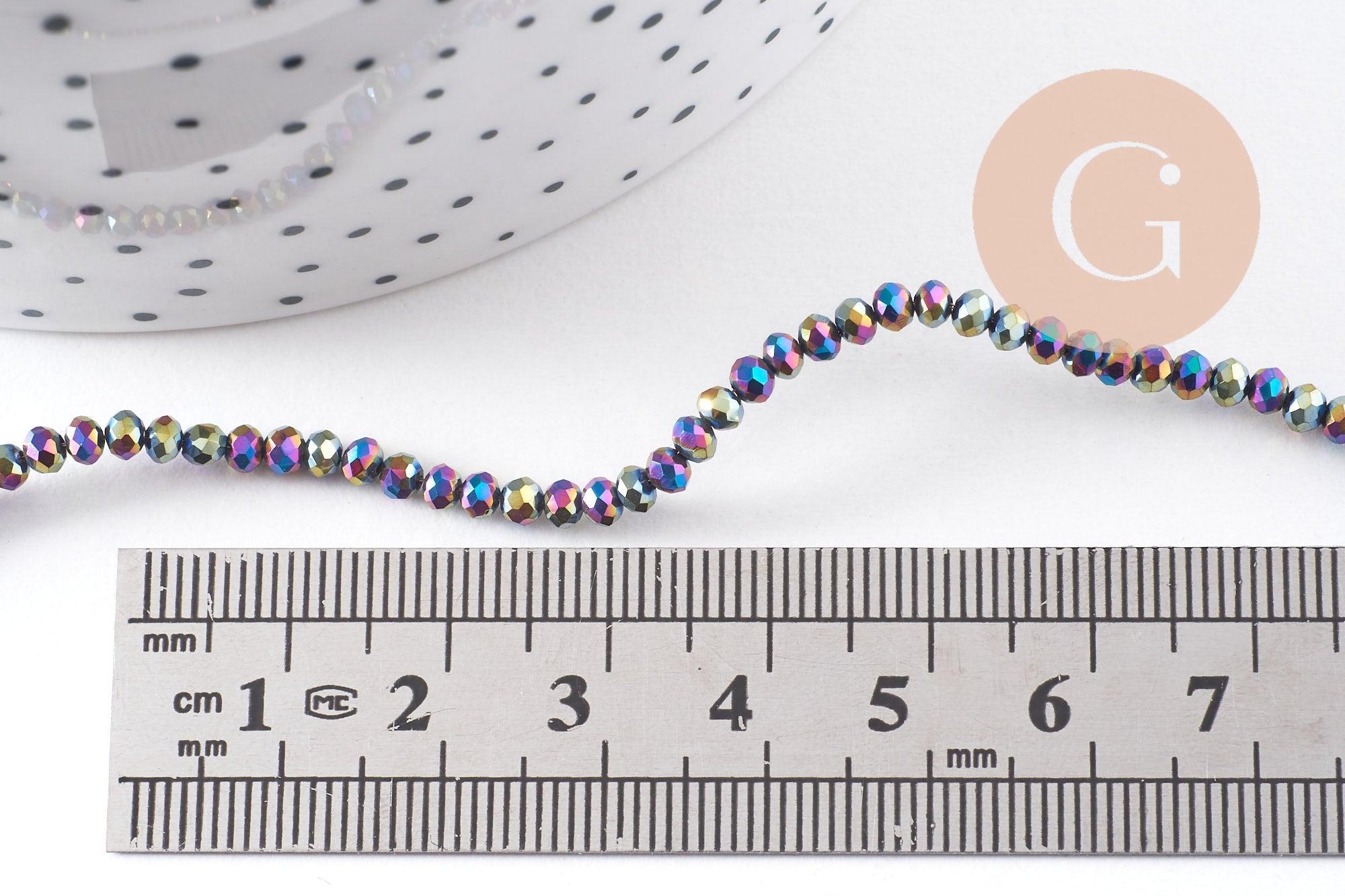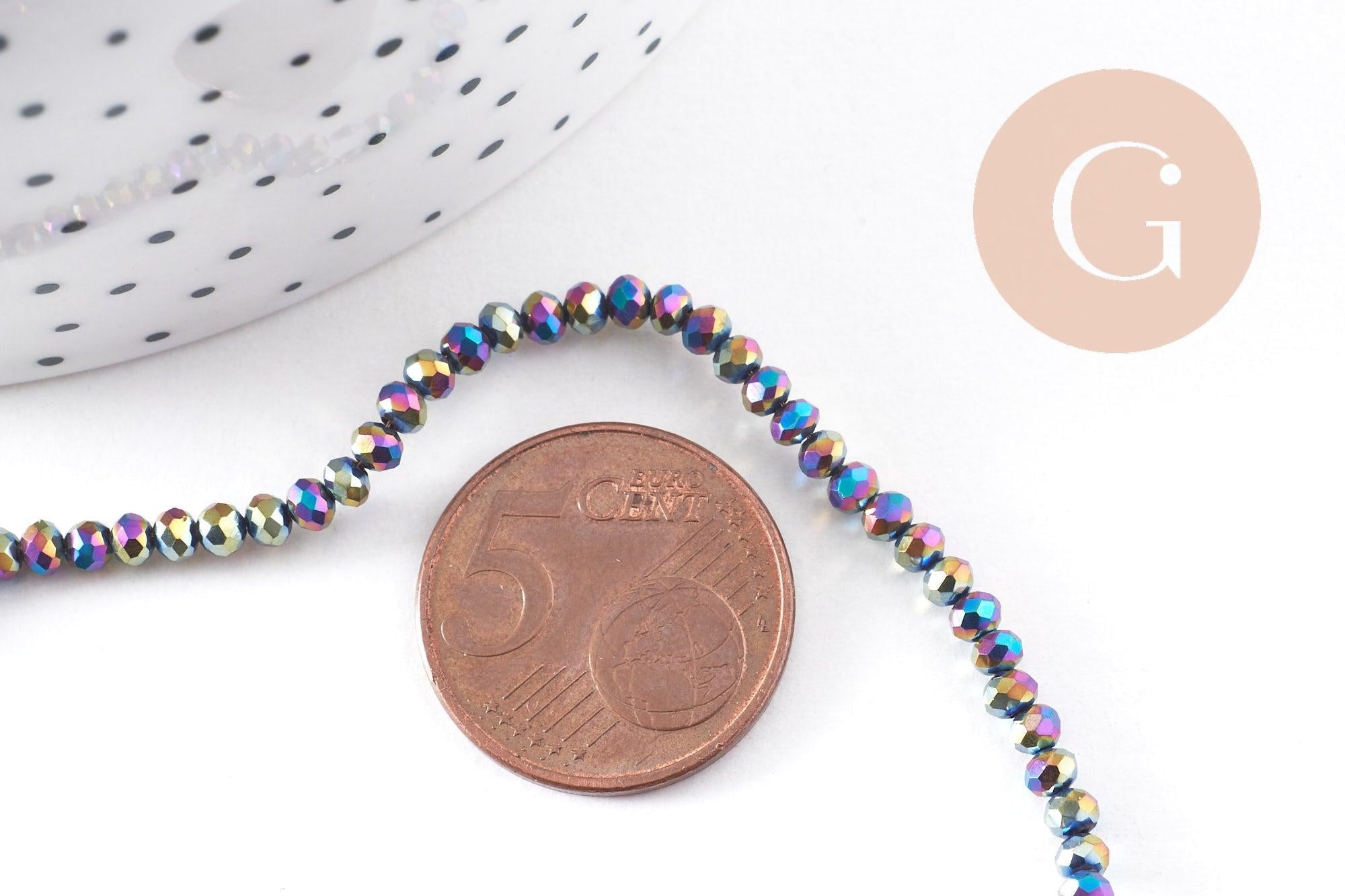 Add a touch of mystery and elegance to your creations with this strand of faceted iridescent black crystal abacus beads . Each bead, meticulously cut, captures and reflects the light with subtlety, offering multi-colored nuances and a shiny finish. Their small size of 3x2 mm makes them ideal for delicate bracelets , fine necklaces , or sophisticated earrings .