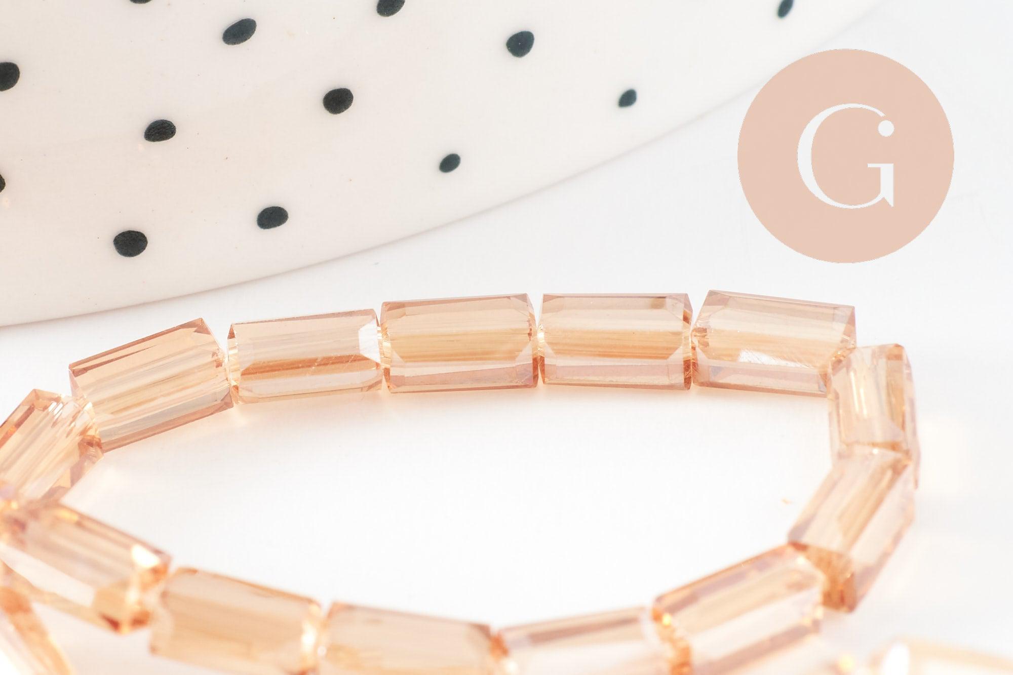 Adopt these rectangular faceted beads in iridescent orange transparent glass , ideal for giving a touch of color and shine to your jewelry creations . Made from quality glass, these beads are ready to use for all your projects.