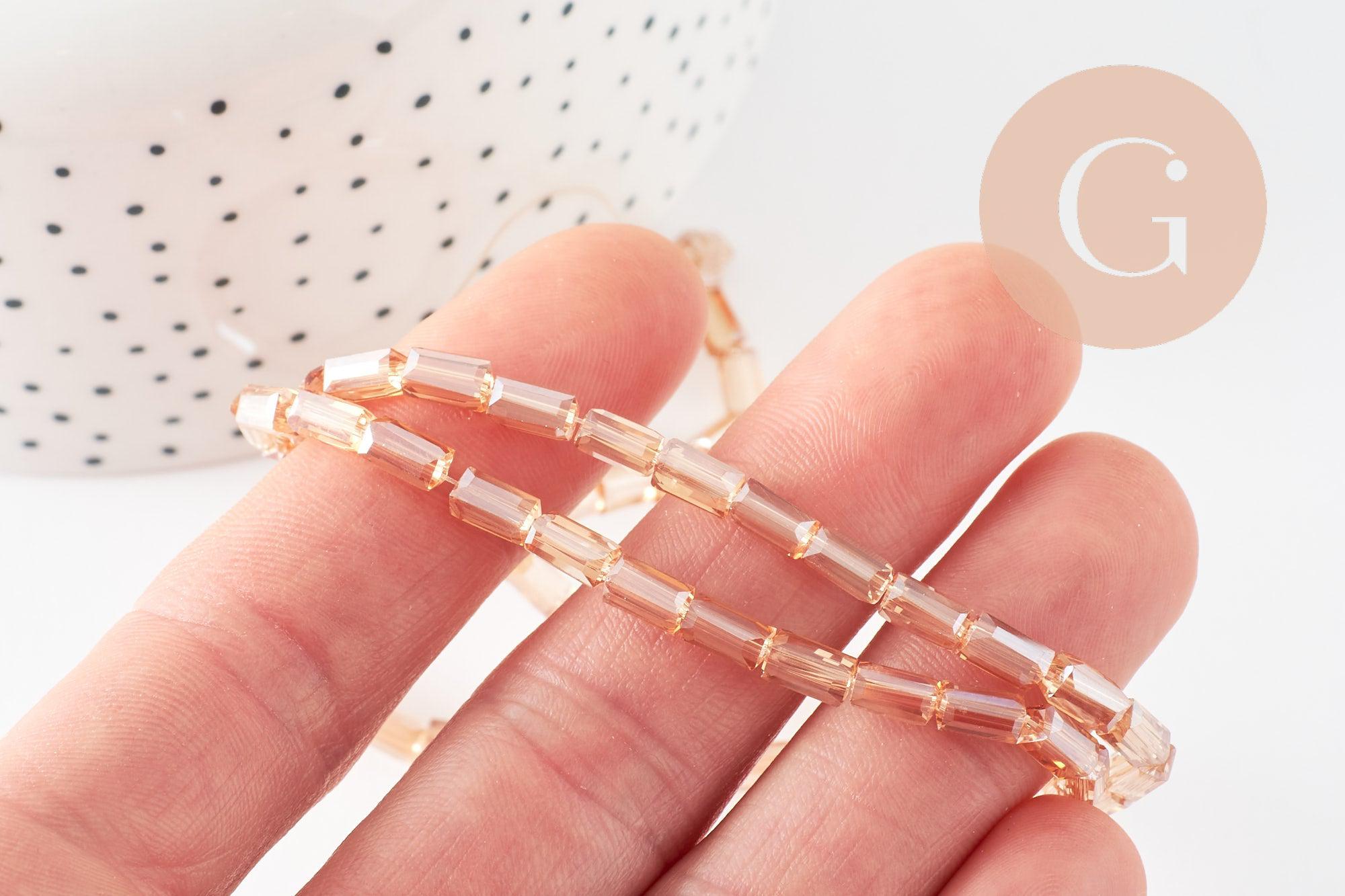 Use them to create necklaces, fine mesh bracelets, pendants or elegant earrings. The rectangular shape and facets will add depth and shine to your jewelry, while the iridescent orange transparency will bring a unique touch of color to your creations.