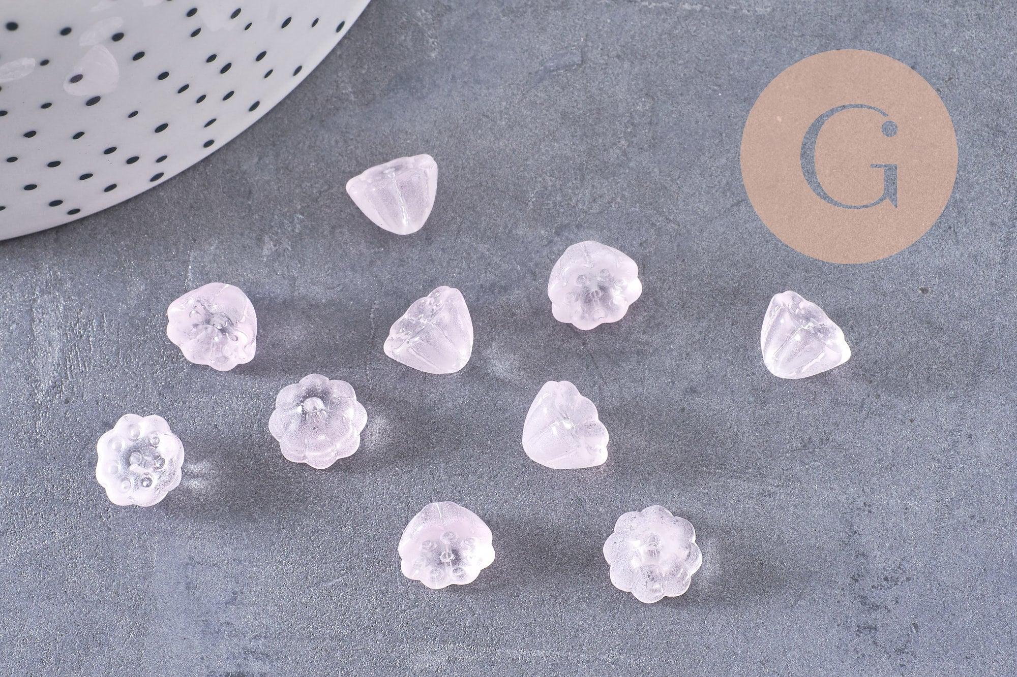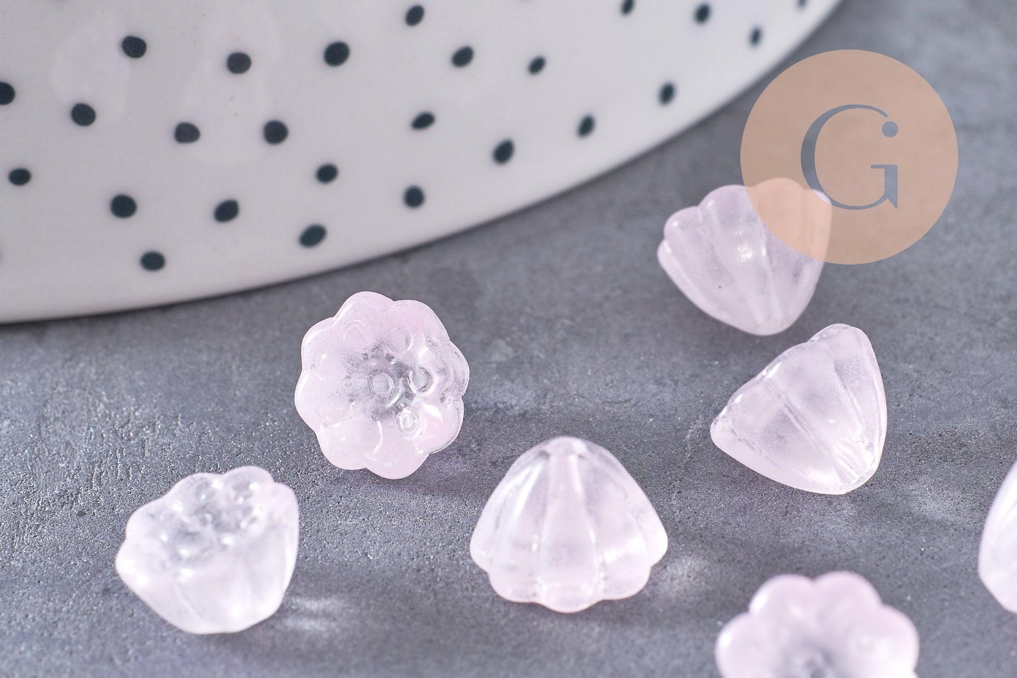 Perles fleur verre rose très clair, perles verre tchèque, perles fleur, verre violet, 11mm, x10 (G4586)