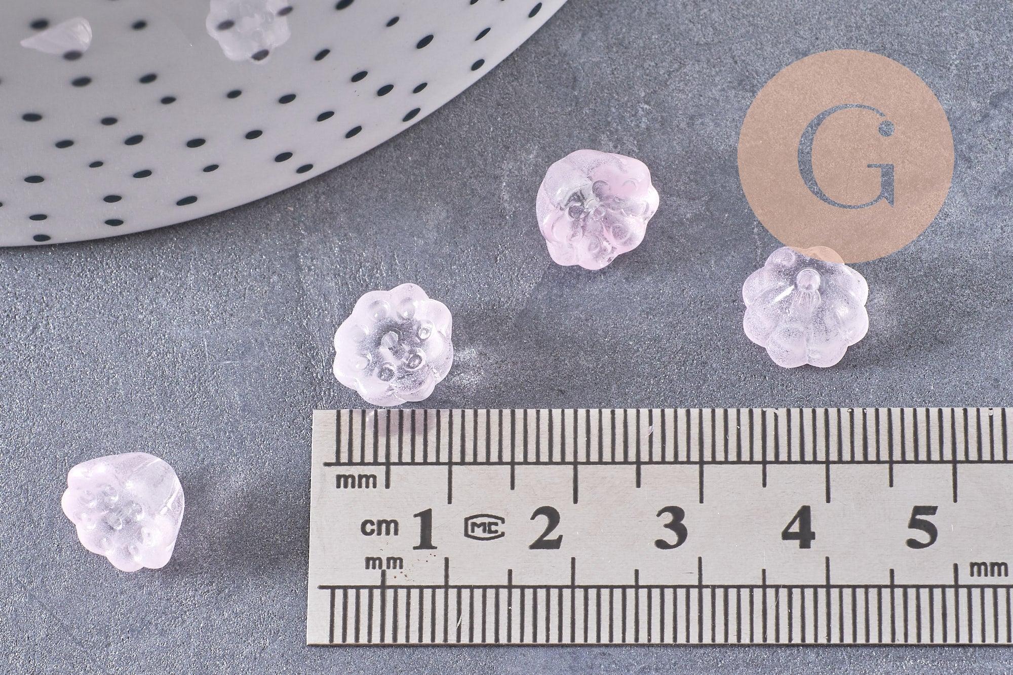 Adorable transparent glass beads in the shape of a flower, painted in very light pink