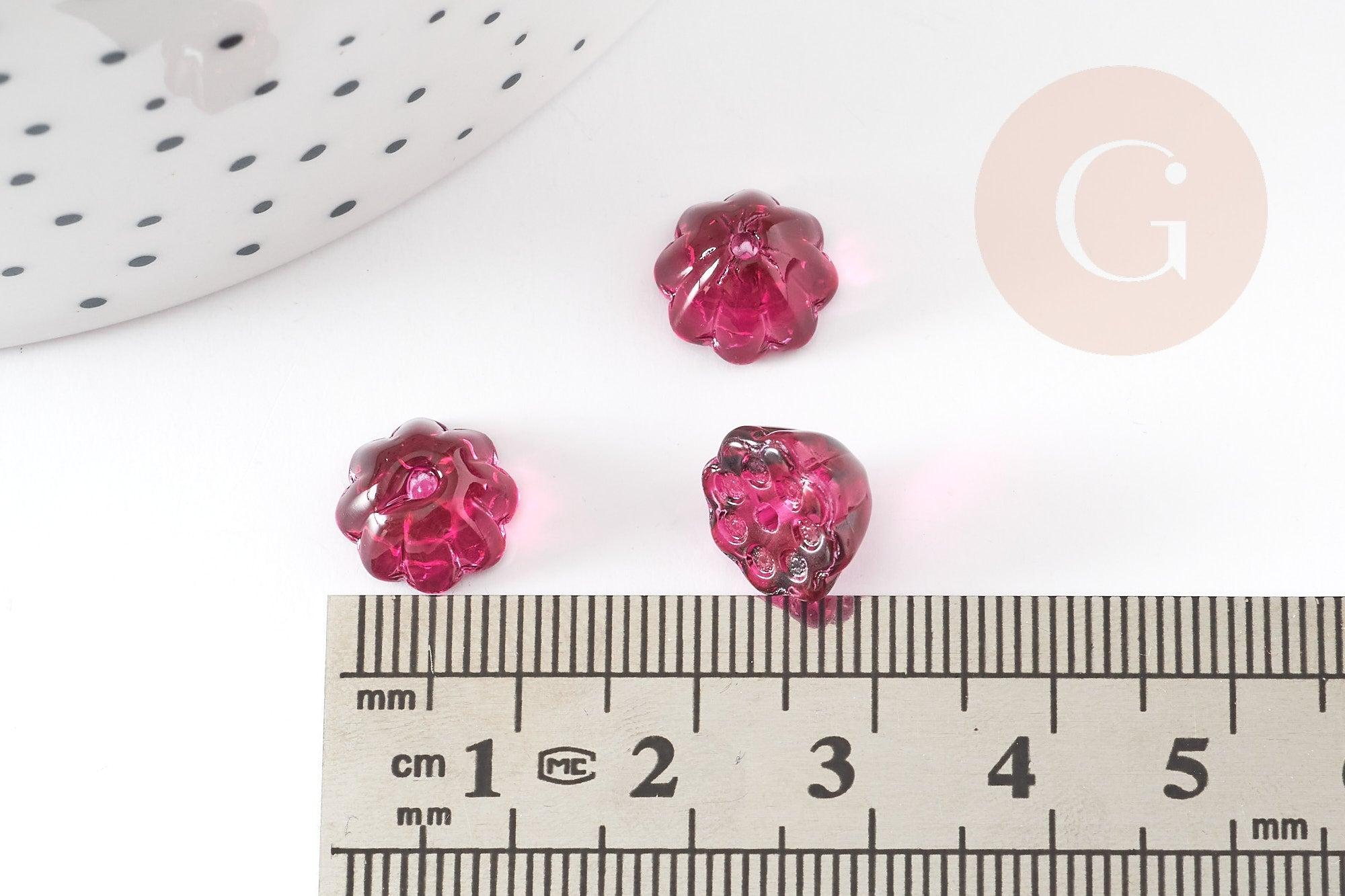 Perles fleur verre rouge et or 11mm, perles verre tchèque, perles fleur, verre violet, x10 (G4190)
