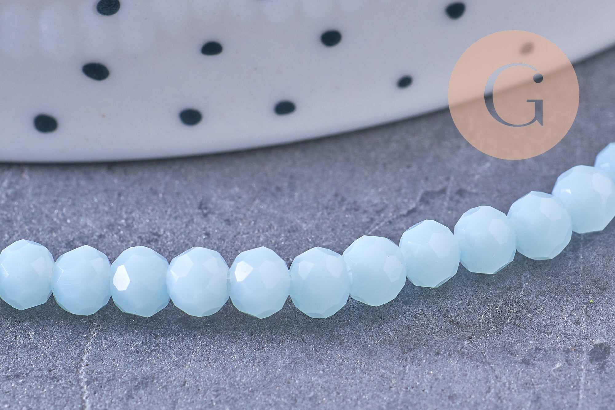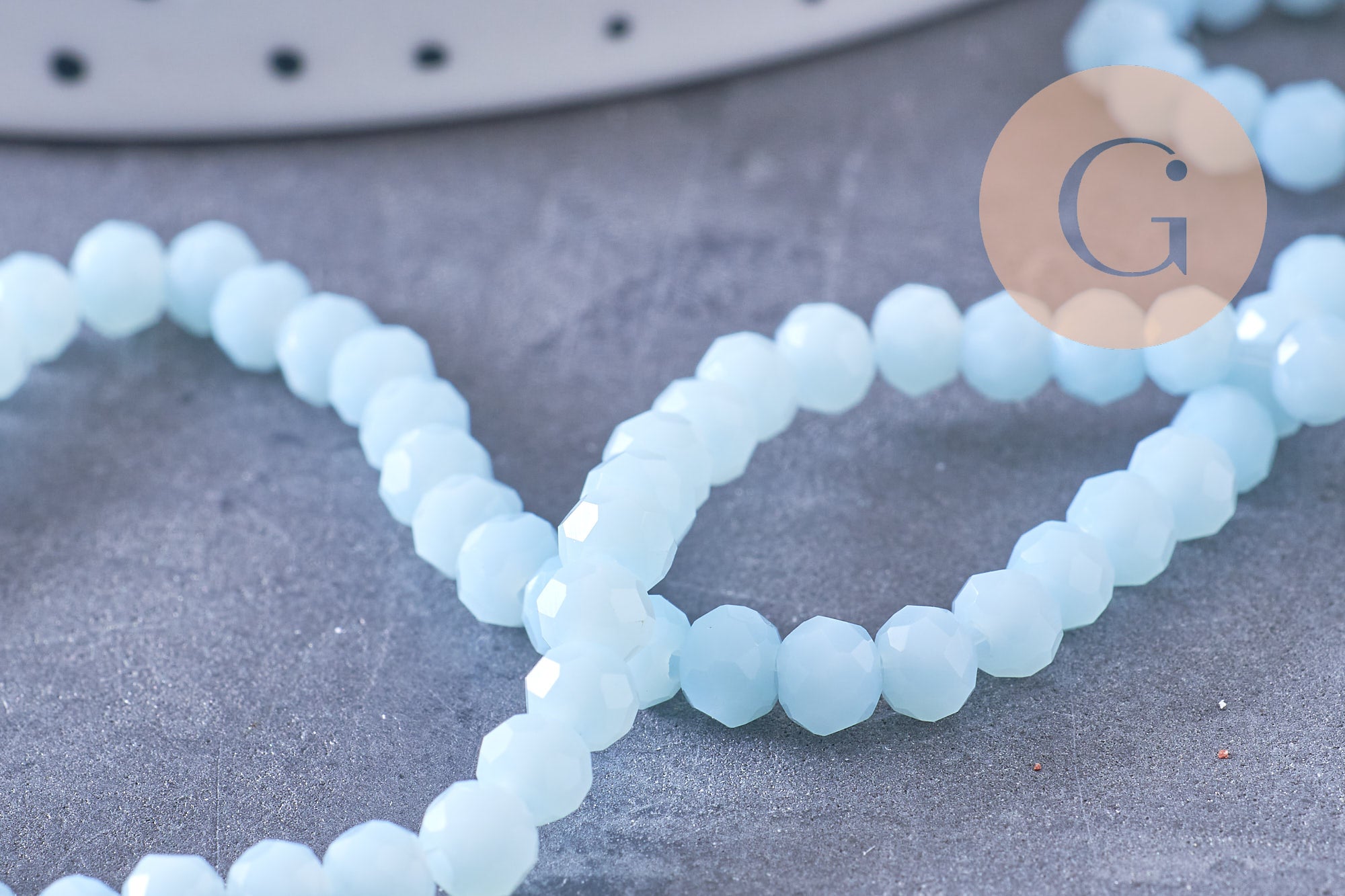 Fall in love with these opaque sky blue crystal rondelle beads , delicately faceted to subtly capture the light. Their soft, luminous hue evokes summer days and pairs perfectly with gold, white, or pastel tones.