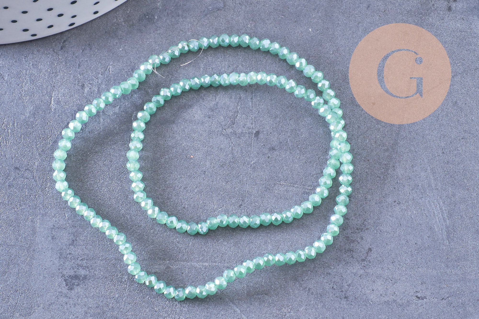 Add a touch of light to your DIY creations with these faceted green crystal glass rondelle beads with iridescent reflections . Their finesse and brilliance make them a perfect choice for delicate jewelry, embroidery or textile creations.