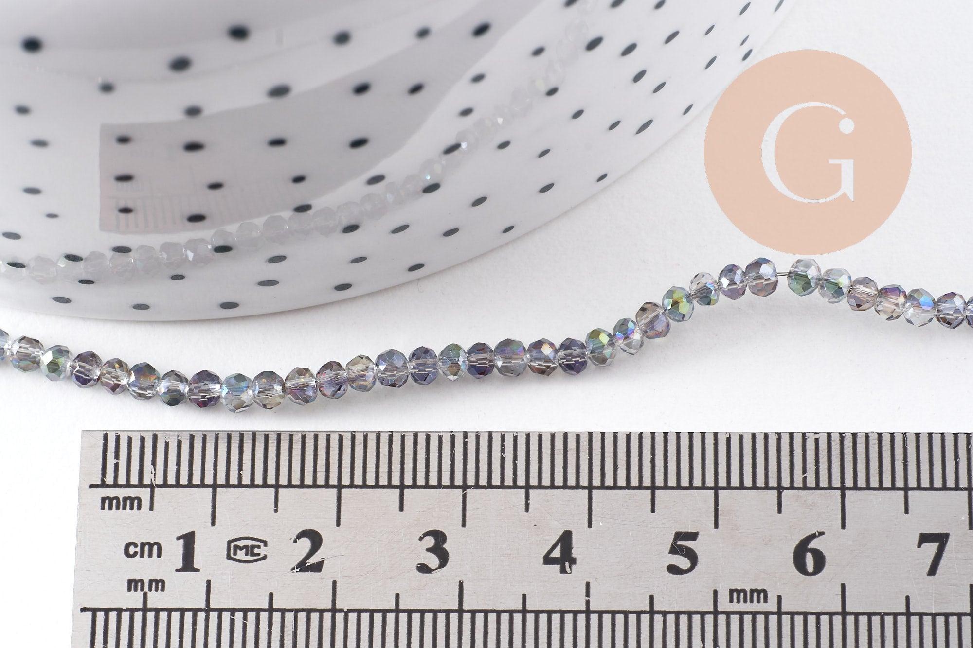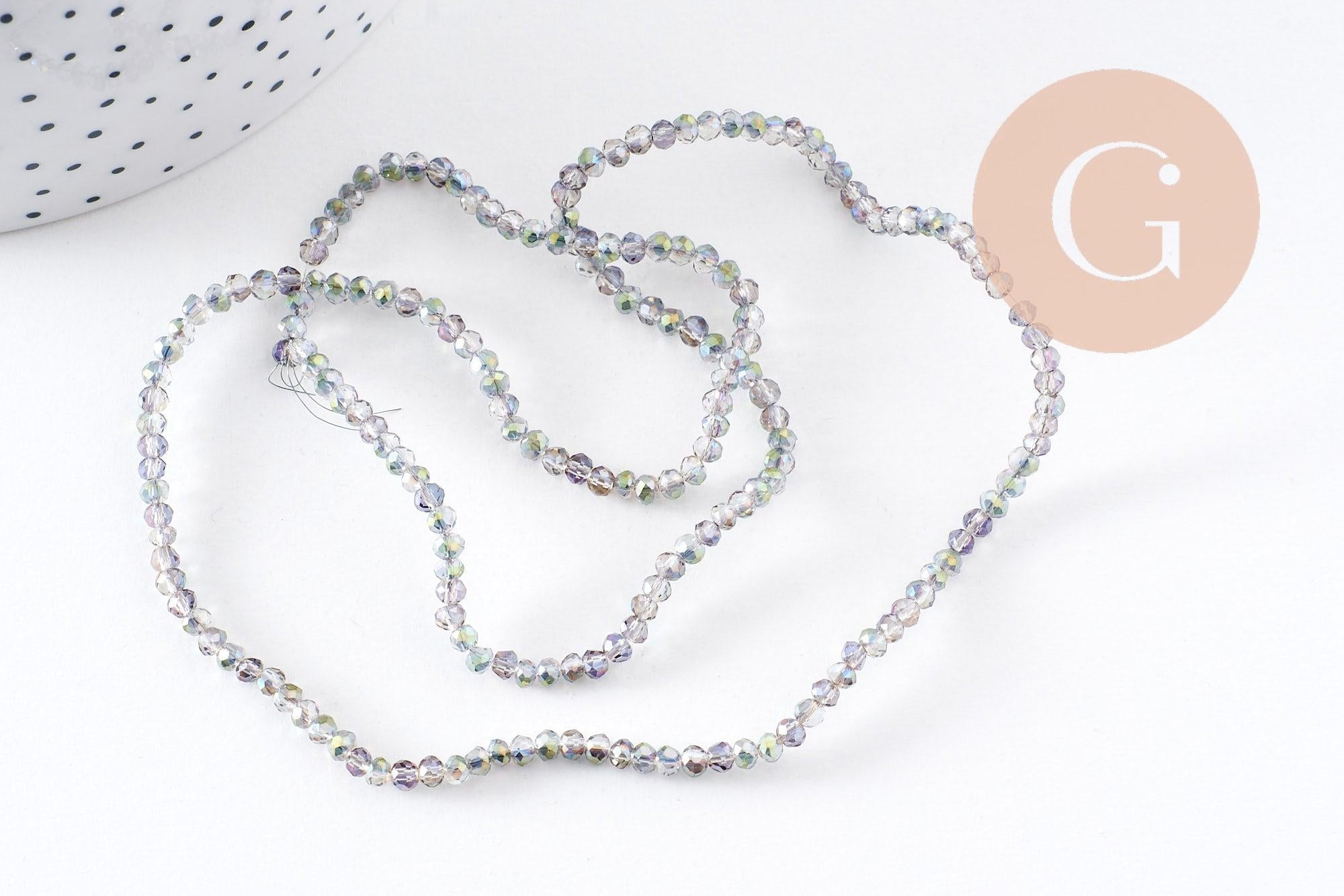 These iridescent grey electroplated glass rondelle beads are perfect for adding a luminous and refined touch to your creations. Their faceted finish captures the light and reveals subtle rainbow reflections, for an elegant look in both minimalist jewelry and colorful compositions.