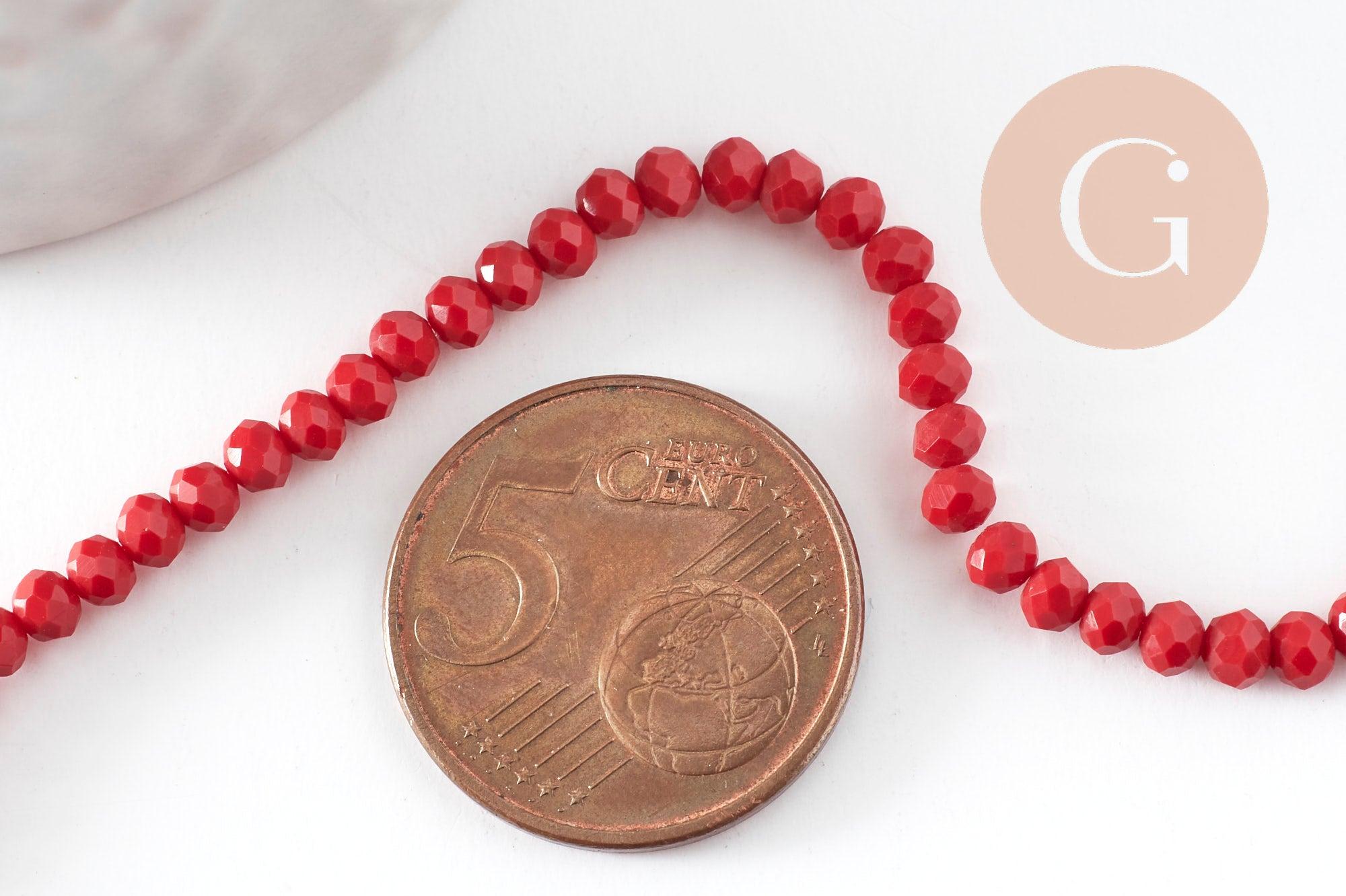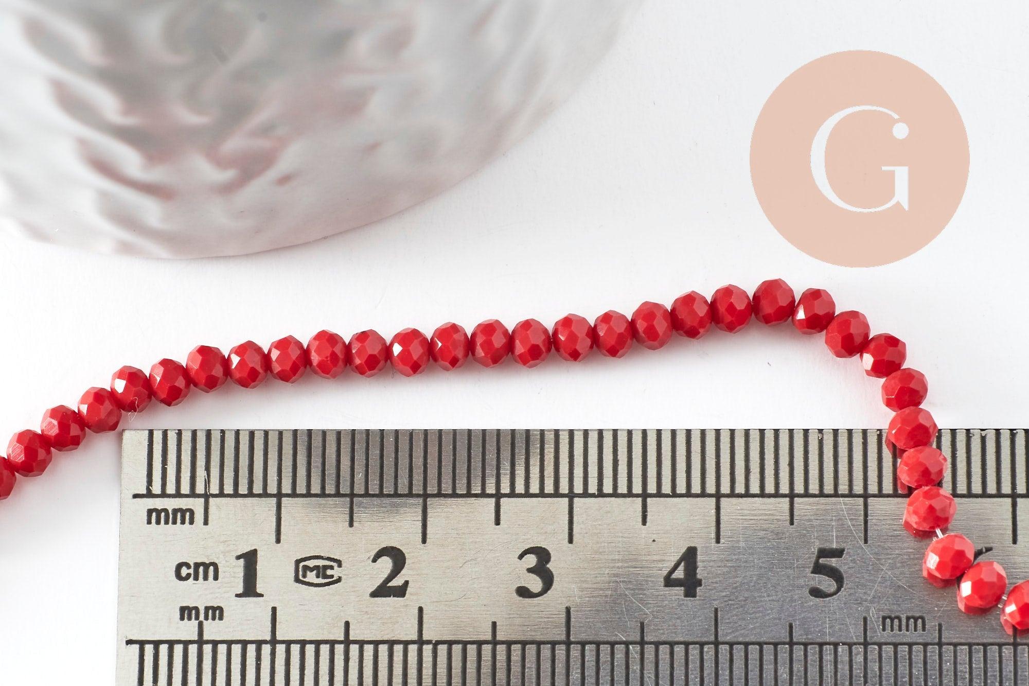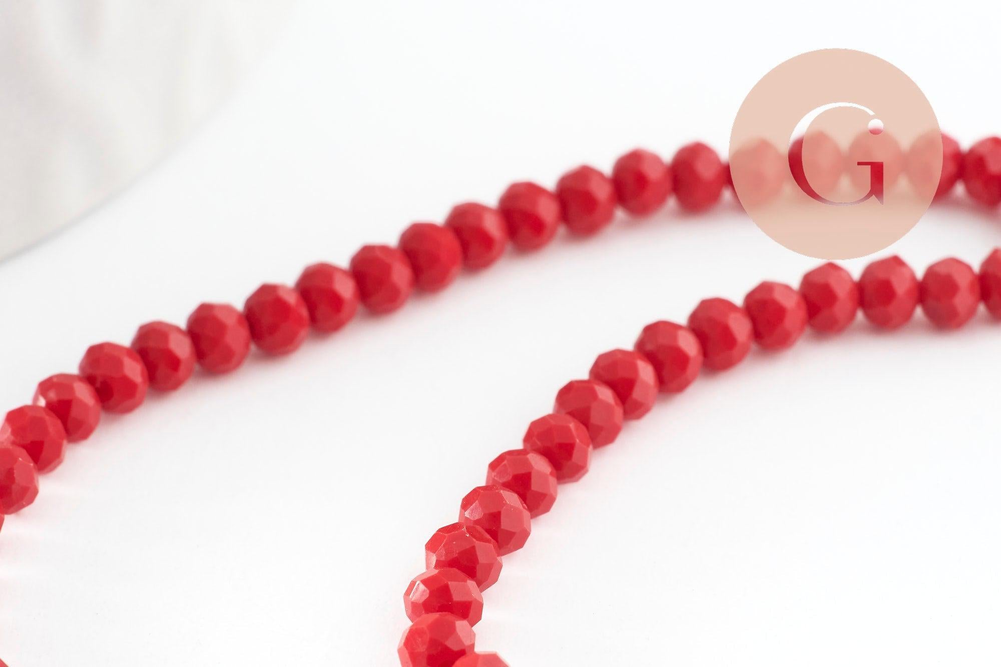 Perles toupies rouge foncé, perle cristal, perles rouge vif, verre facette,perle bicone,fil de35 cm x1 (G0613)