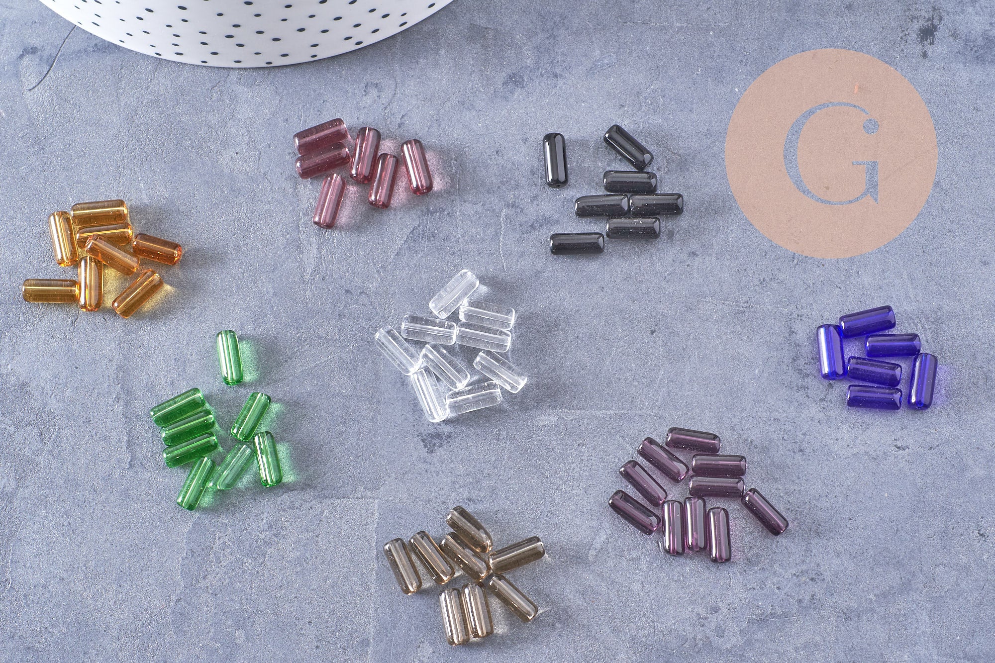 Add a graphic and colorful touch to your DIY creations with this set of glass tube beads in a variety of elegant colors . Their tubular shape and finesse make them ideal for creating modern and lightweight jewelry.