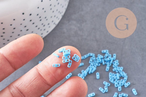 The ideal square-shaped beads in light blue glass for making colorful jewelry, using elastic thread .