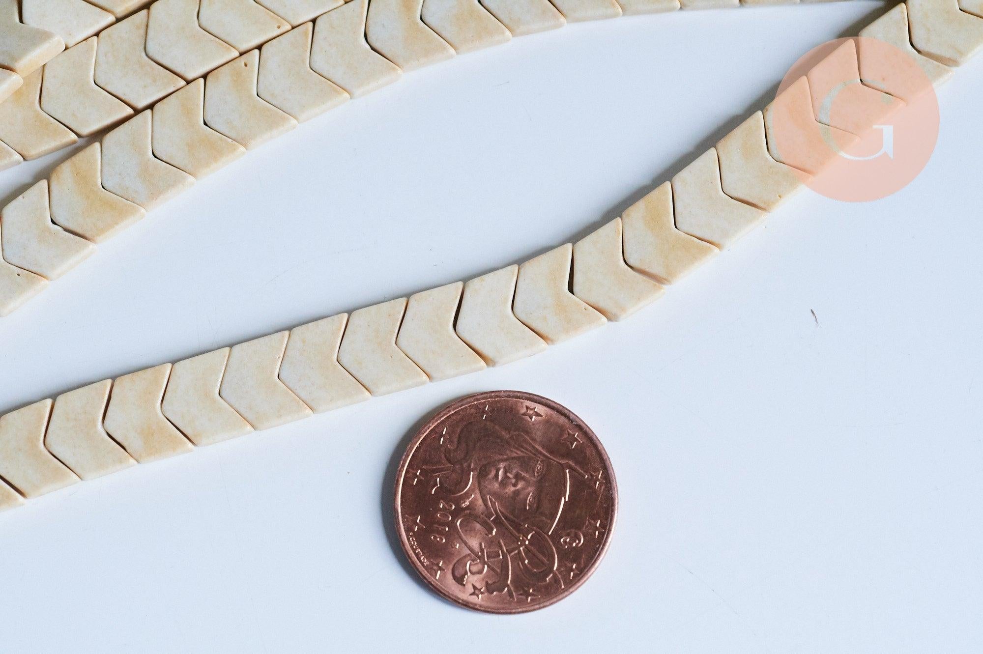 These beige dyed agate V-shaped beads are ideal for DIY costume jewelry creations.