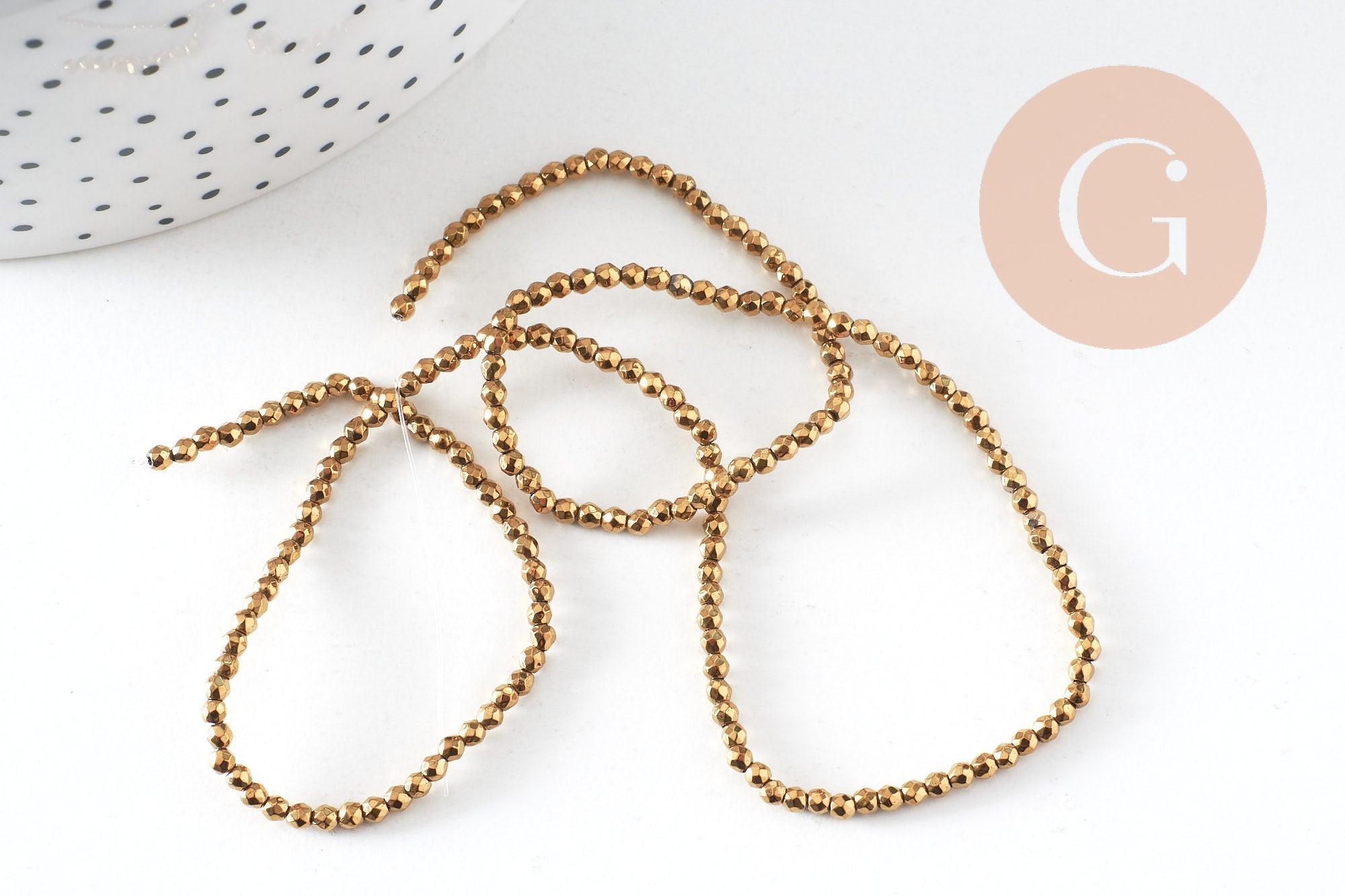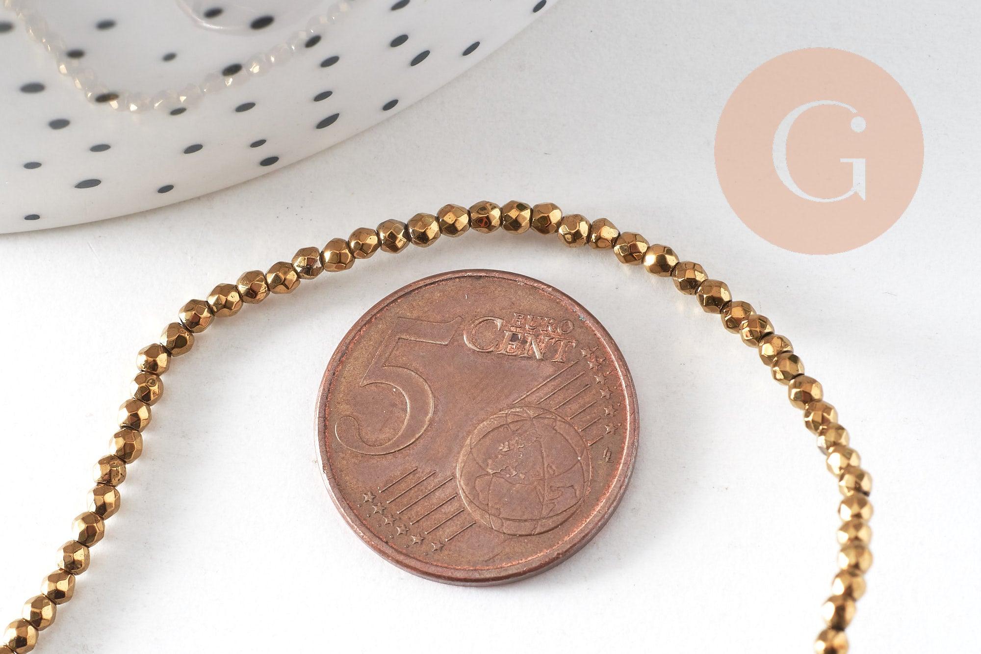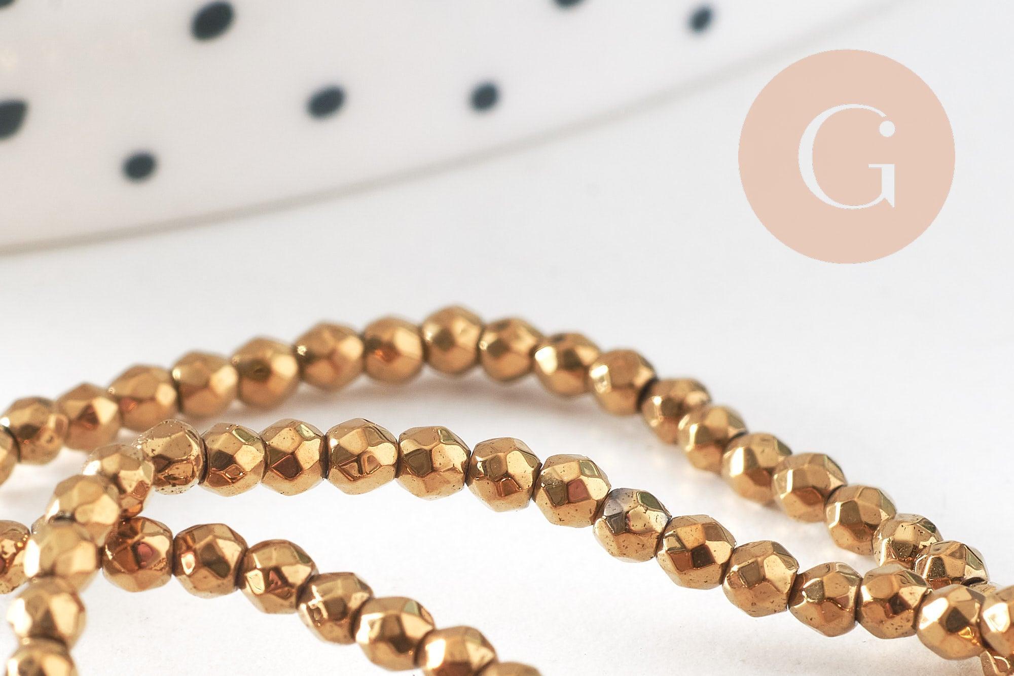 With these 2mm round faceted golden synthetic hematite beads , make many DIY costume jewelry .