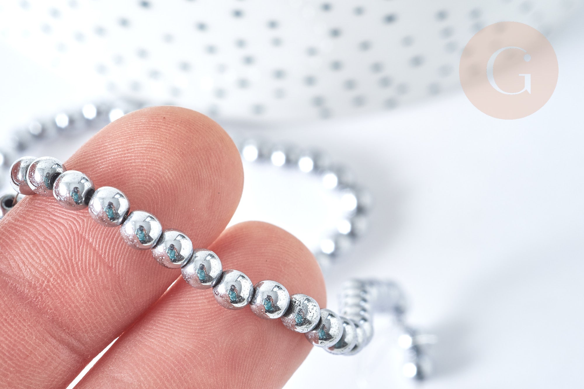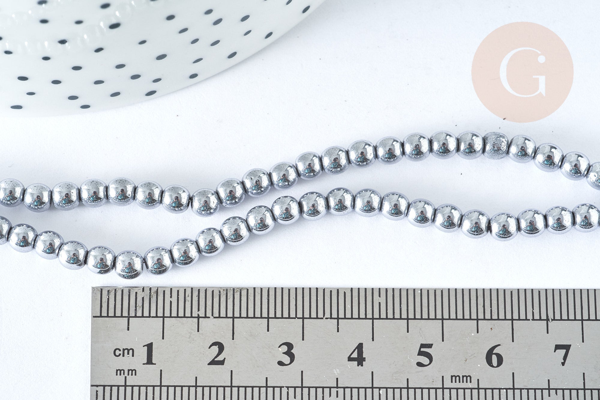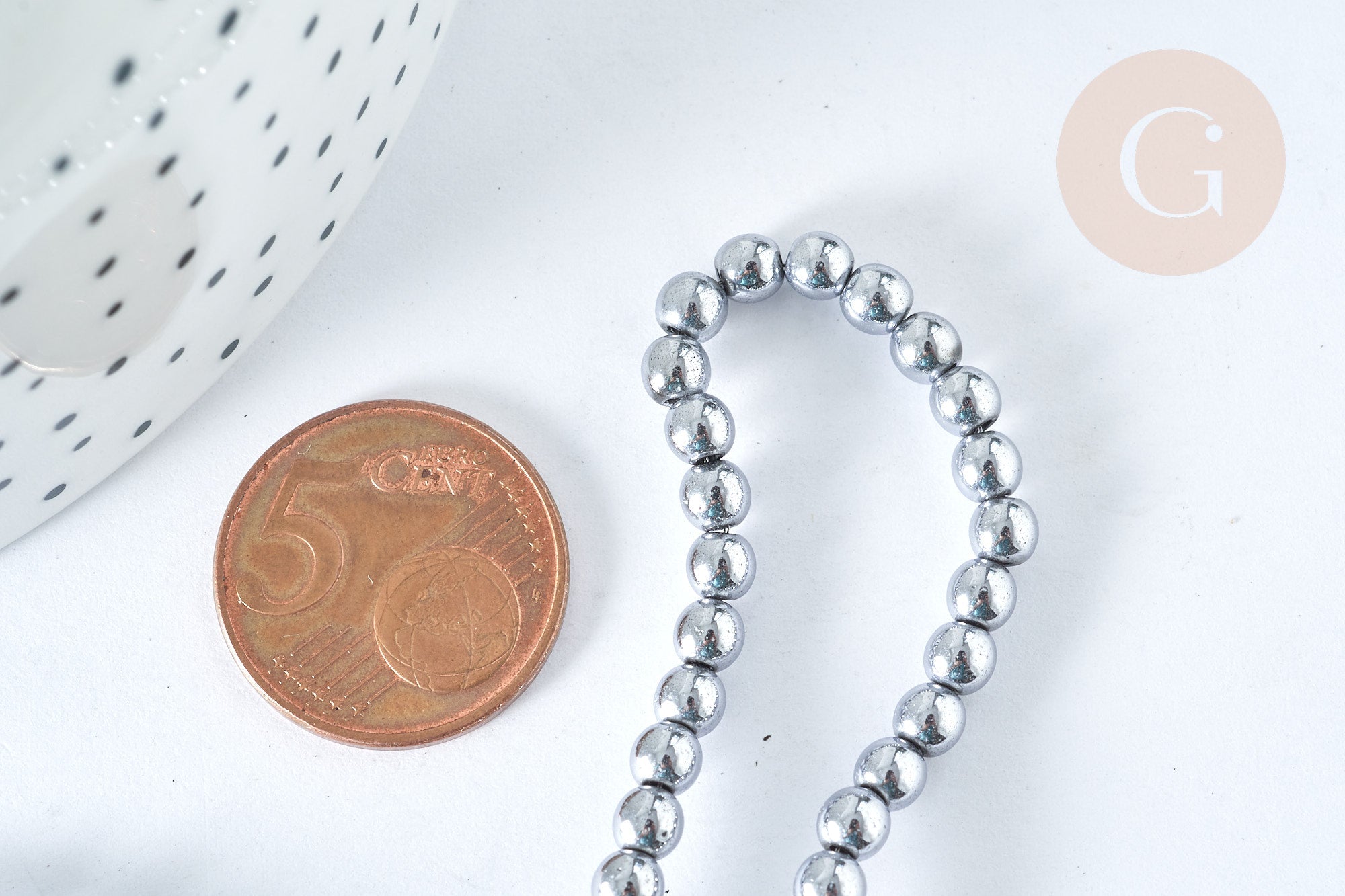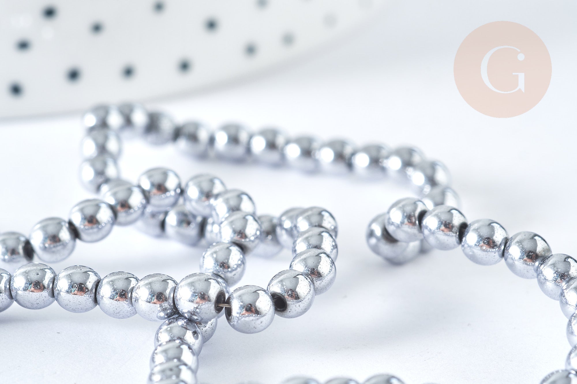 Perle ronde hématite de synthèse gris clair 4mm,DIY, x1 le fil de 39cm (G7402)