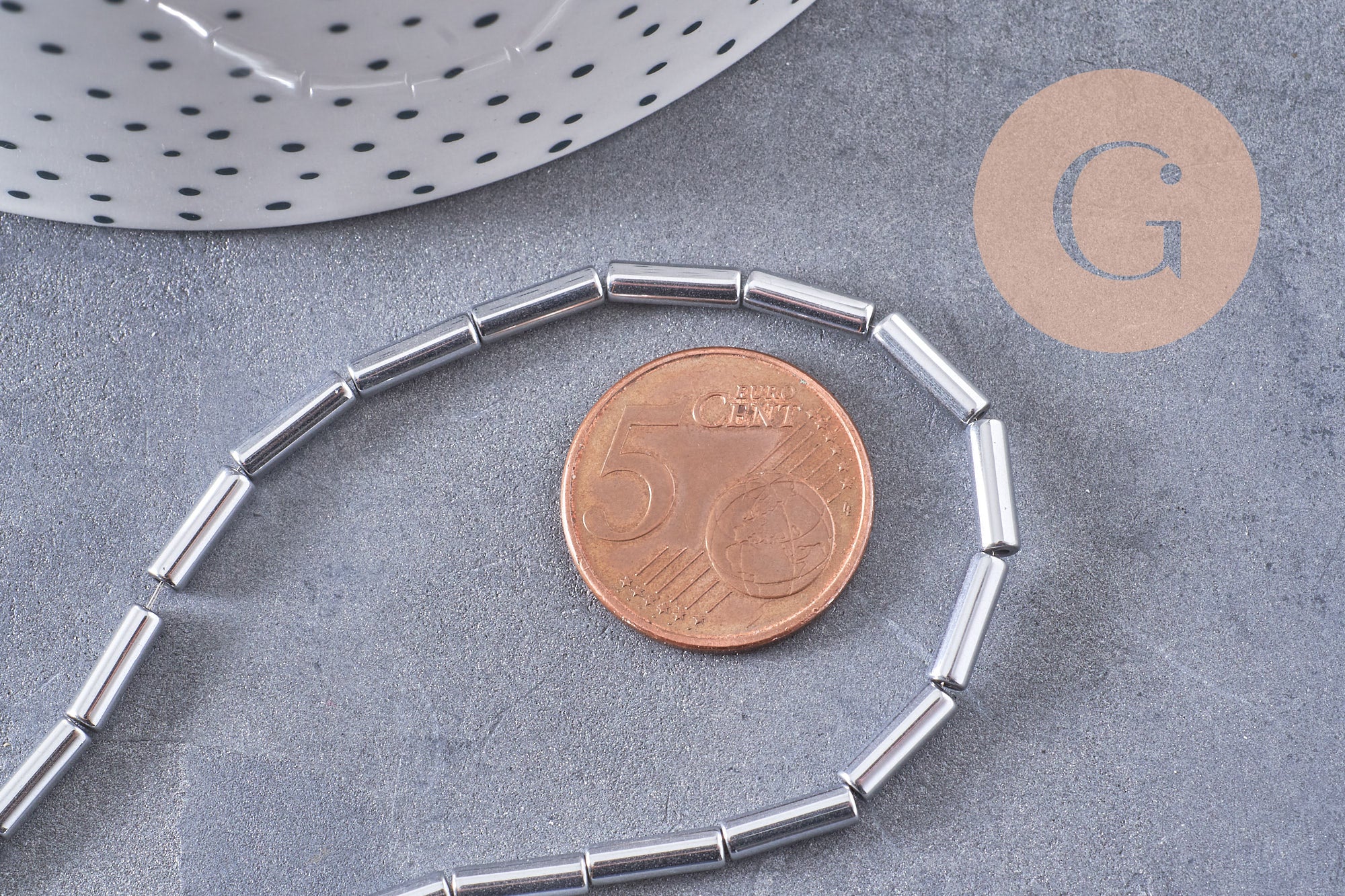Perle tube hématite argentée 9.5mm, x1 fil de 19cm (G4484)