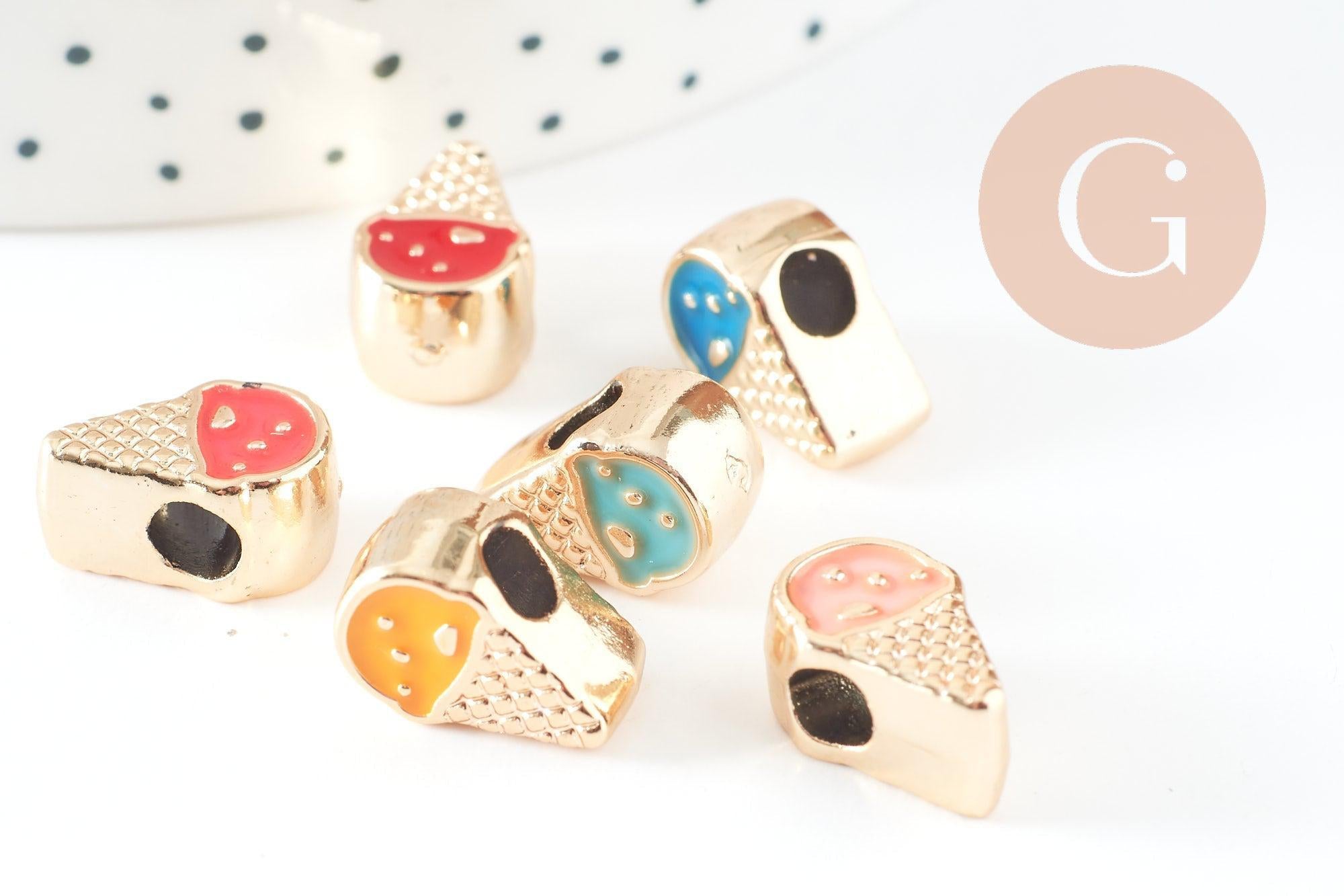 Fall for this set of ice cream-shaped beads in multi-colored and gold acrylic plastic