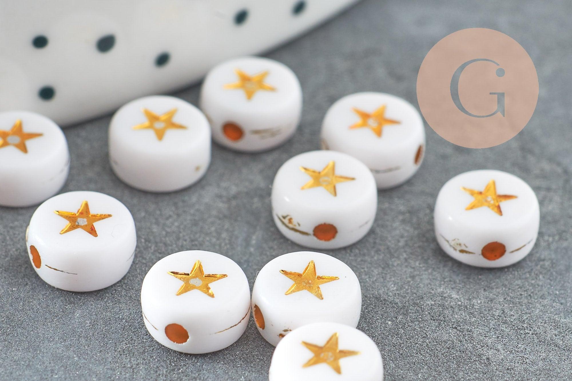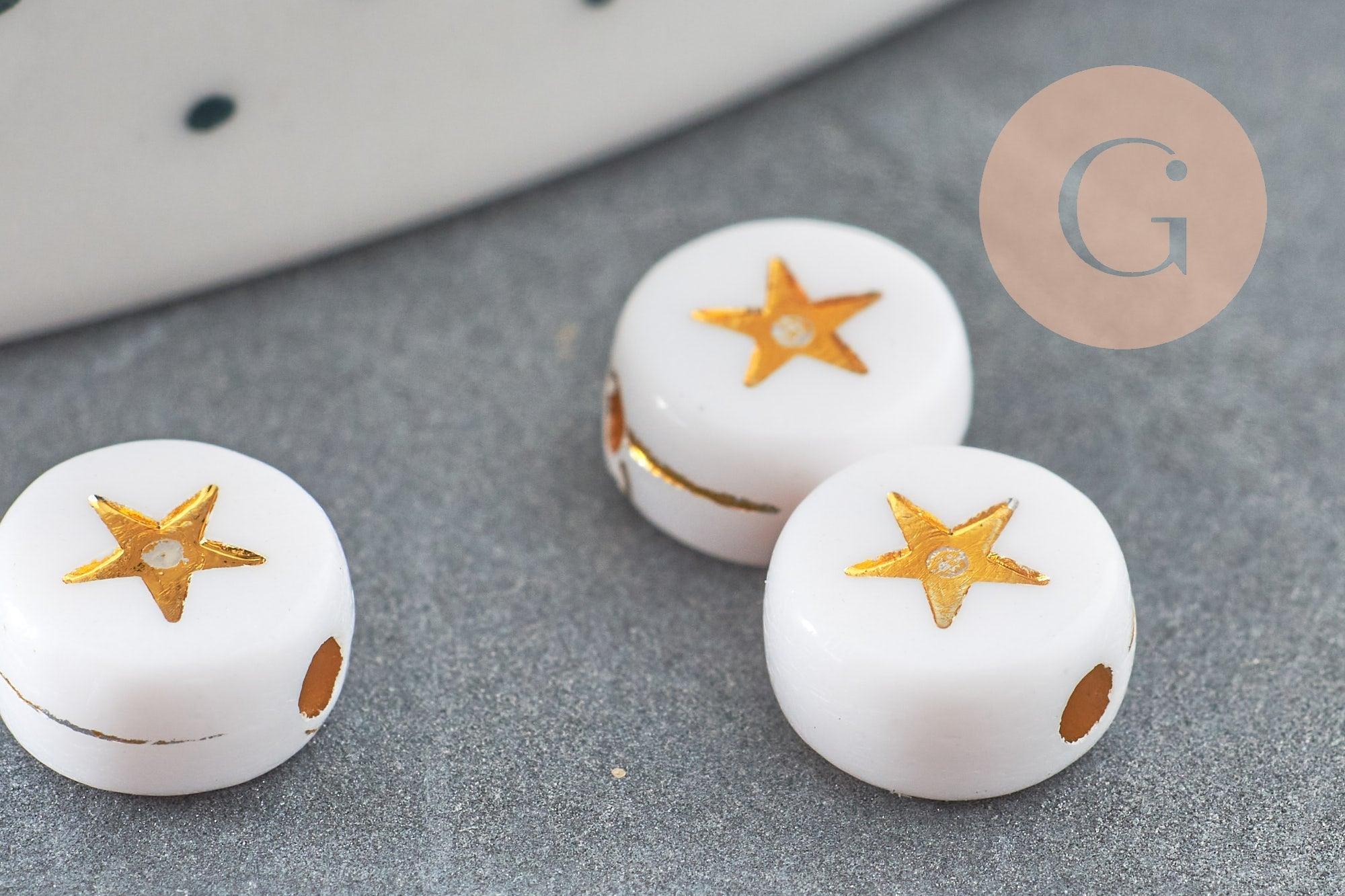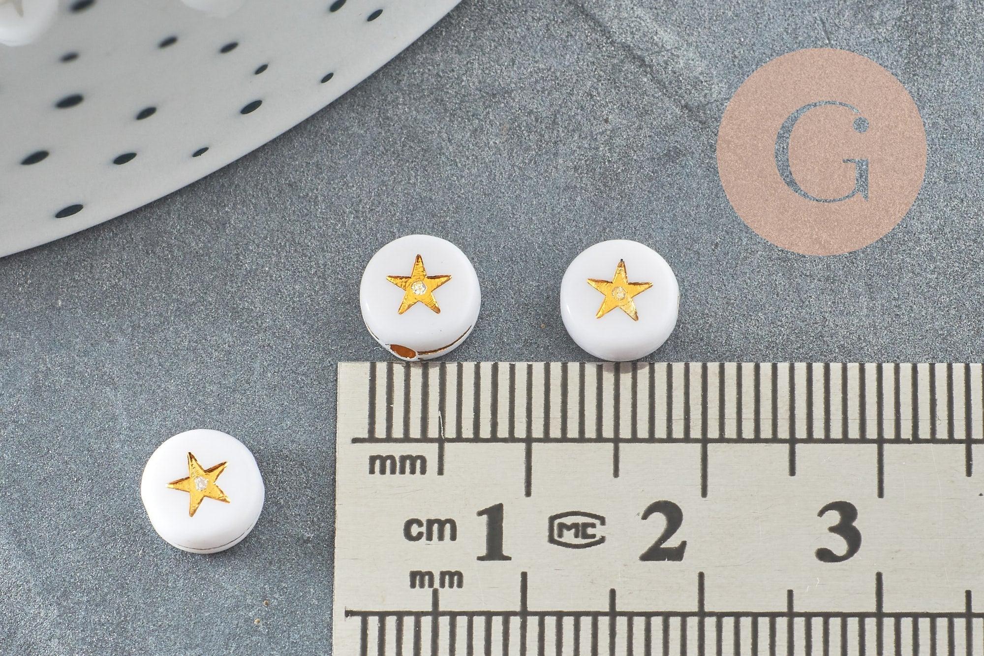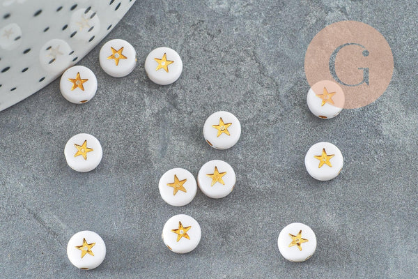 Lots of 10 grams of round white plastic beads with a small golden star in the center , plastic beads Ideal for making necklaces or bracelets with messages