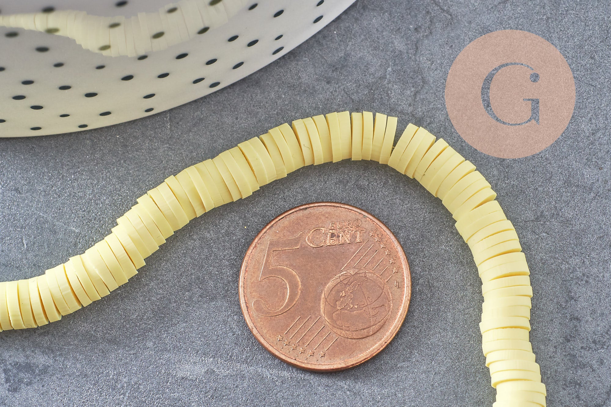 Brighten up your DIY creations with these bright yellow polymer heishi beads. Their flat, lightweight design is ideal for creating colorful, sunny jewelry that's easy to wear year-round.
