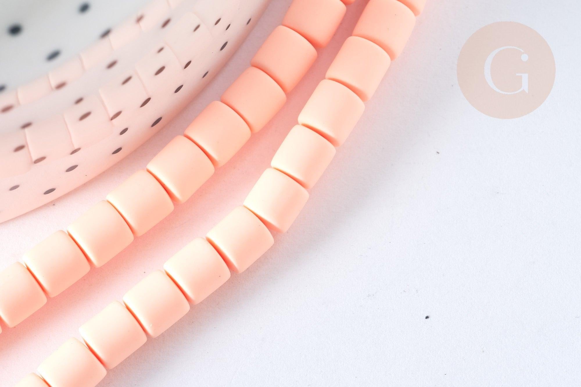 Perles polymère tube rose saumon 6.5x6 mm, fabrication bijoux heishi , le fil de 40cm G7325