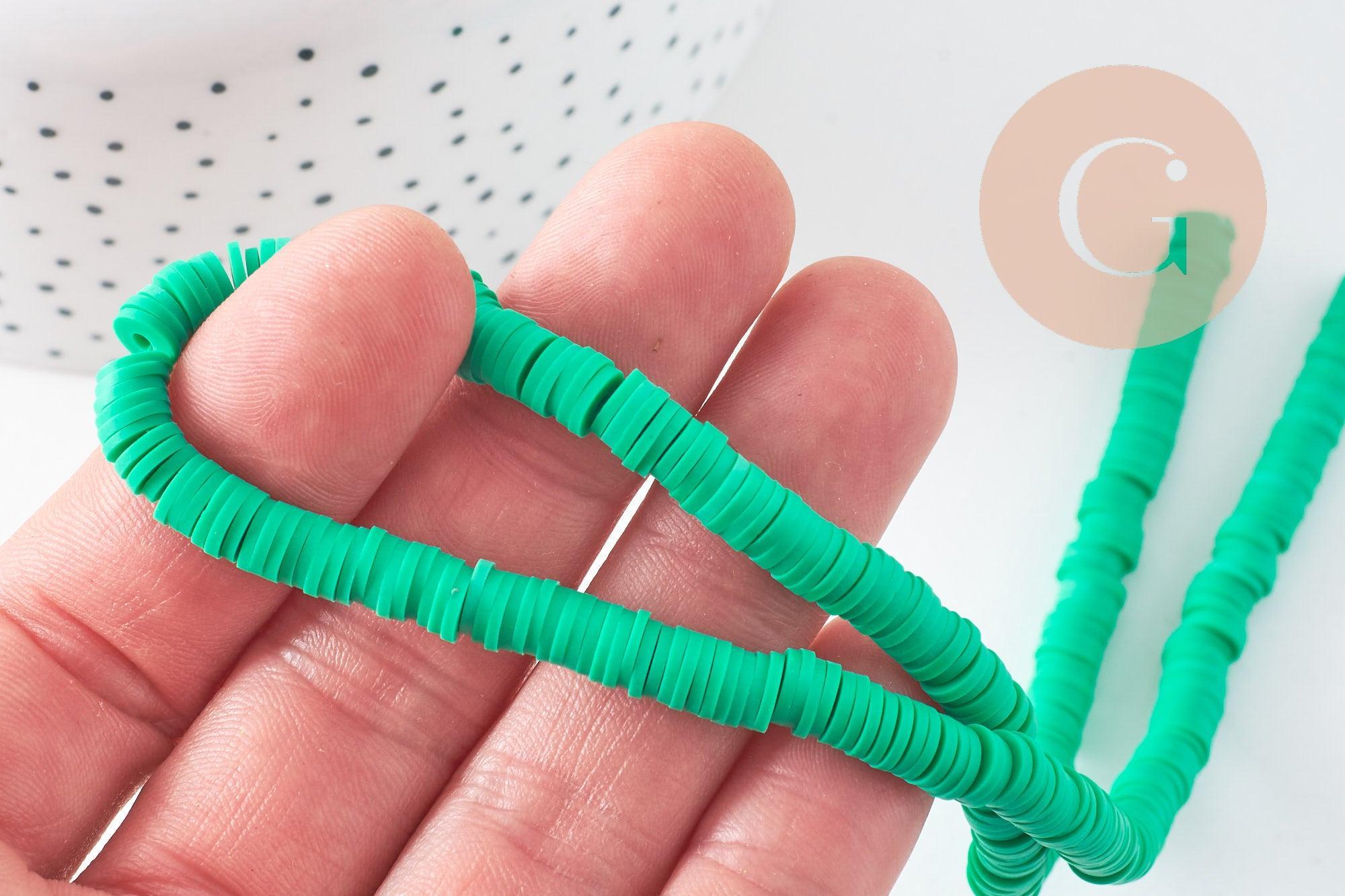 Perles polymère vert clair heishi 6mm, fil de 38-40cm, x1 (G5068)