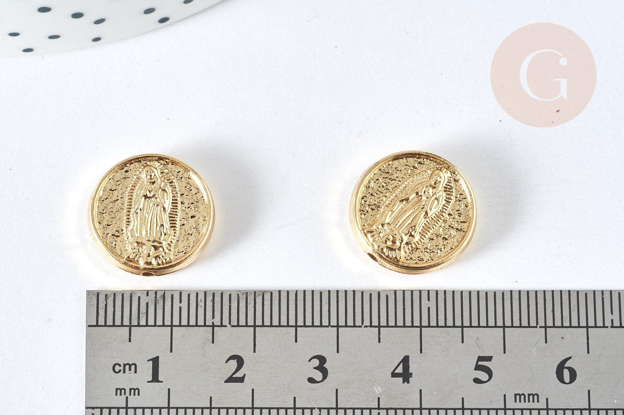 Round Virgin Mary pearl, gold-plated brass, 15.5mm, x1 (G7500)