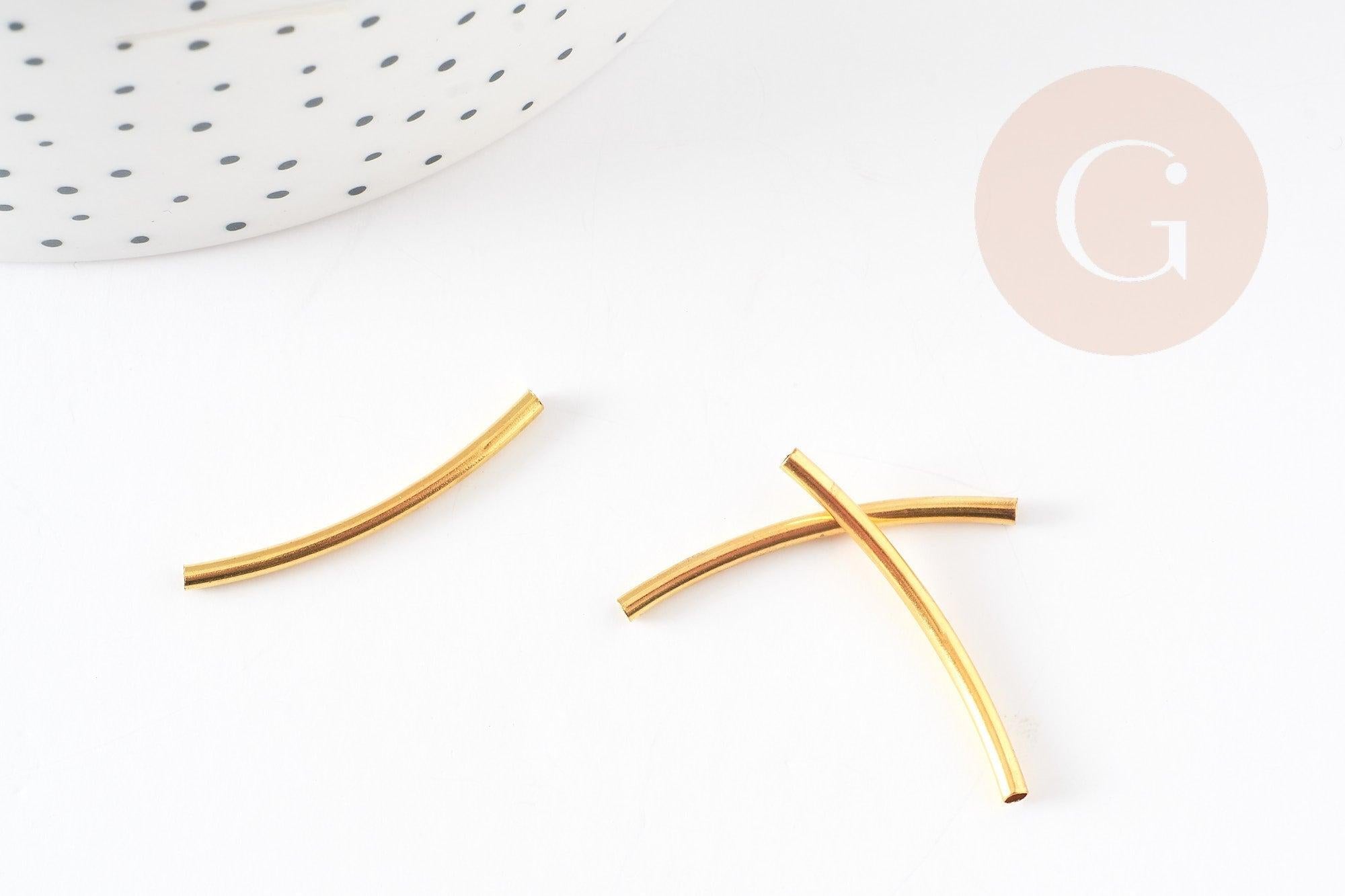 A set of 50 curved tubes in gold-plated brass, perfect for making fine and elegant jewelry.