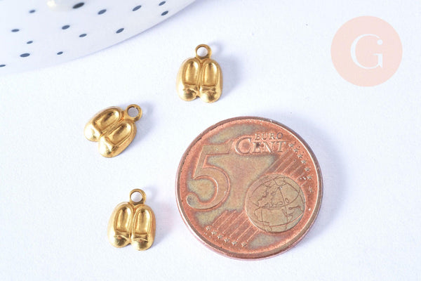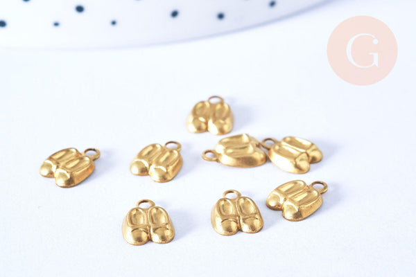 Adopt this charm representing a pair of ballerina shoes in raw brass , nickel-free.